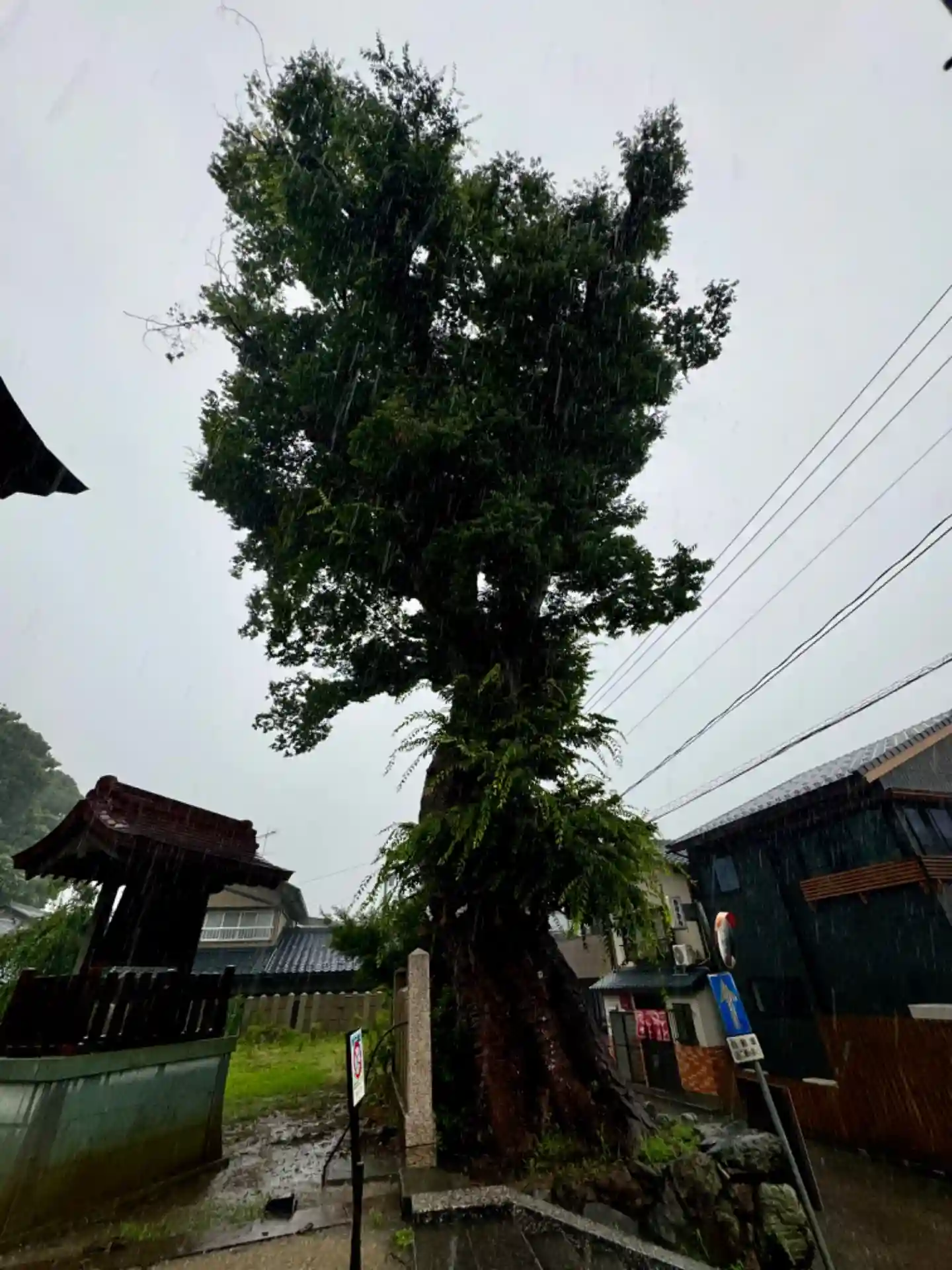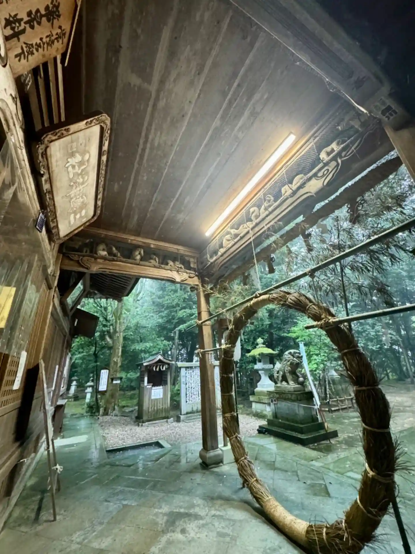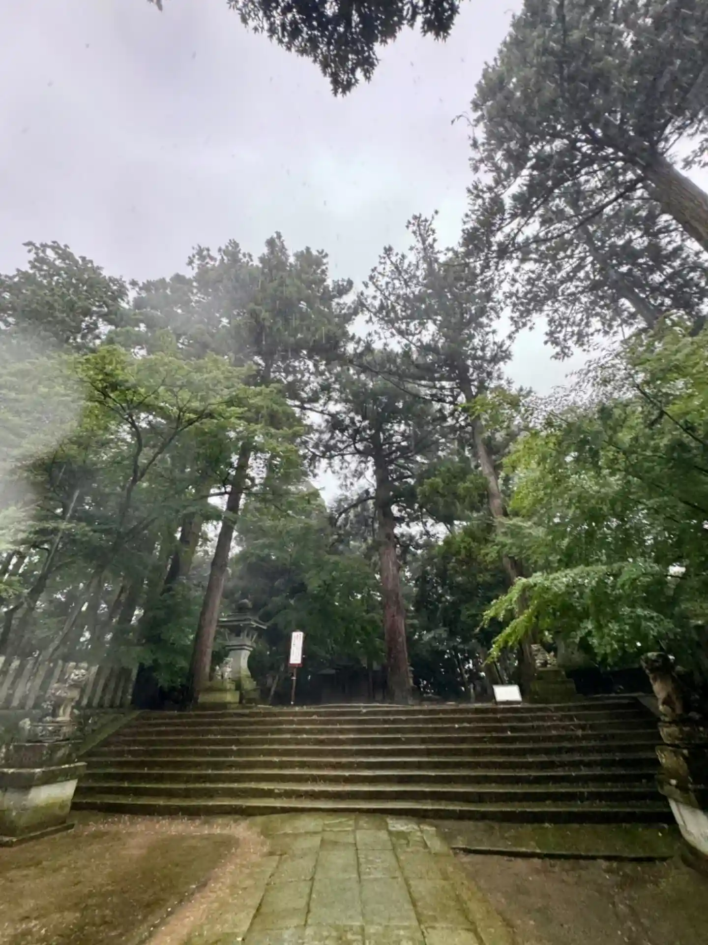 お詣りどうしよう😨と思うほどの豪雨でした。でもね 今度いつ来れるかわからないので、拝殿まではあがりたいと決意し🚗をおりました。傘を片手に📱で写真を撮ろうとしたら、携帯が濡れる😅