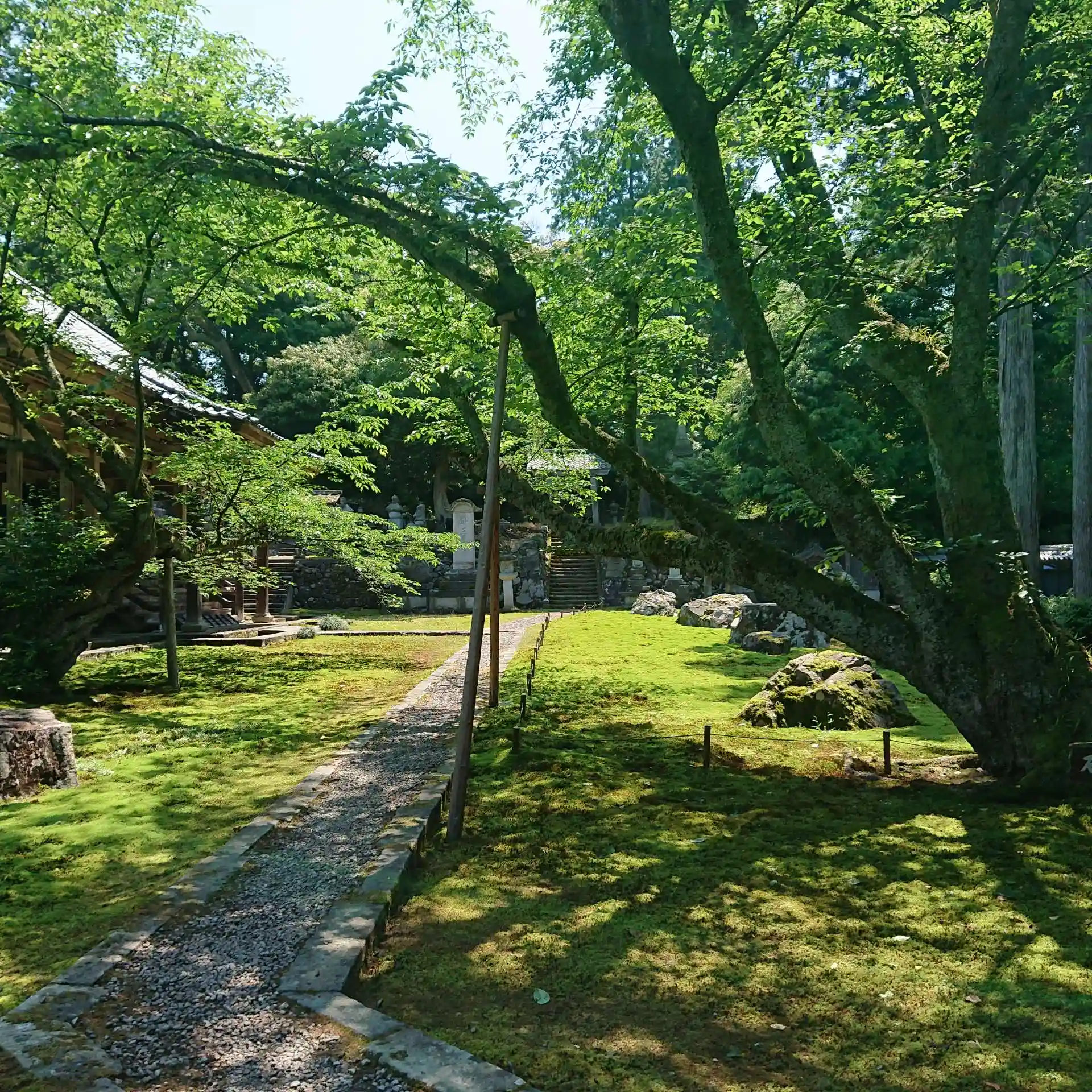 雨上がりで余計に苔が美しい❤️ 猫が昼寝をしていて こんなに綺麗な庭園を毎日眺めてられるなんて幸せ😃💕な猫やな~