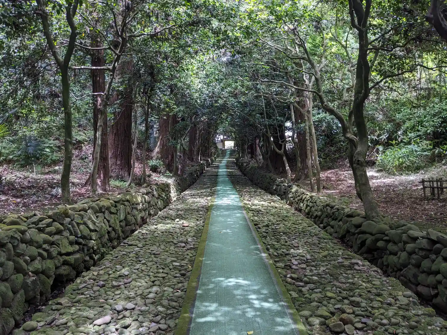 杉とツバキの木立を通ると清涼な空気に包まれます。