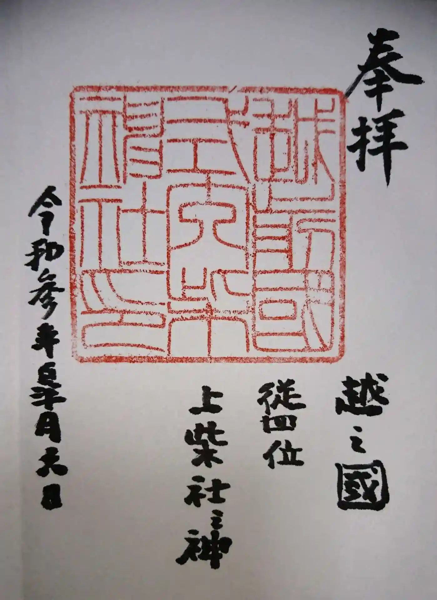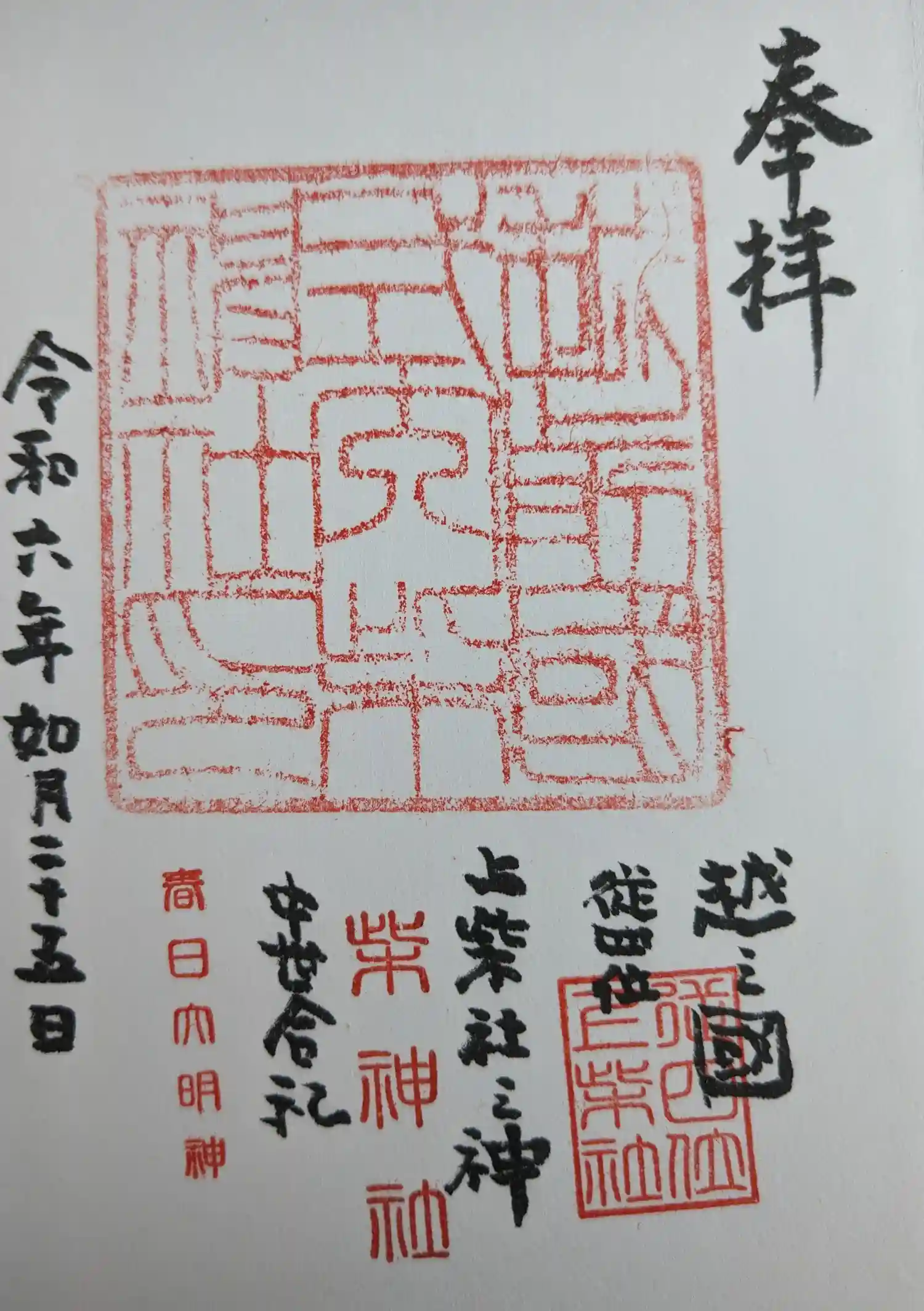 永平寺町松岡春日の柴神社さんにて、御竜印を直書きにていただきました(全39社の20社目)🖌️
