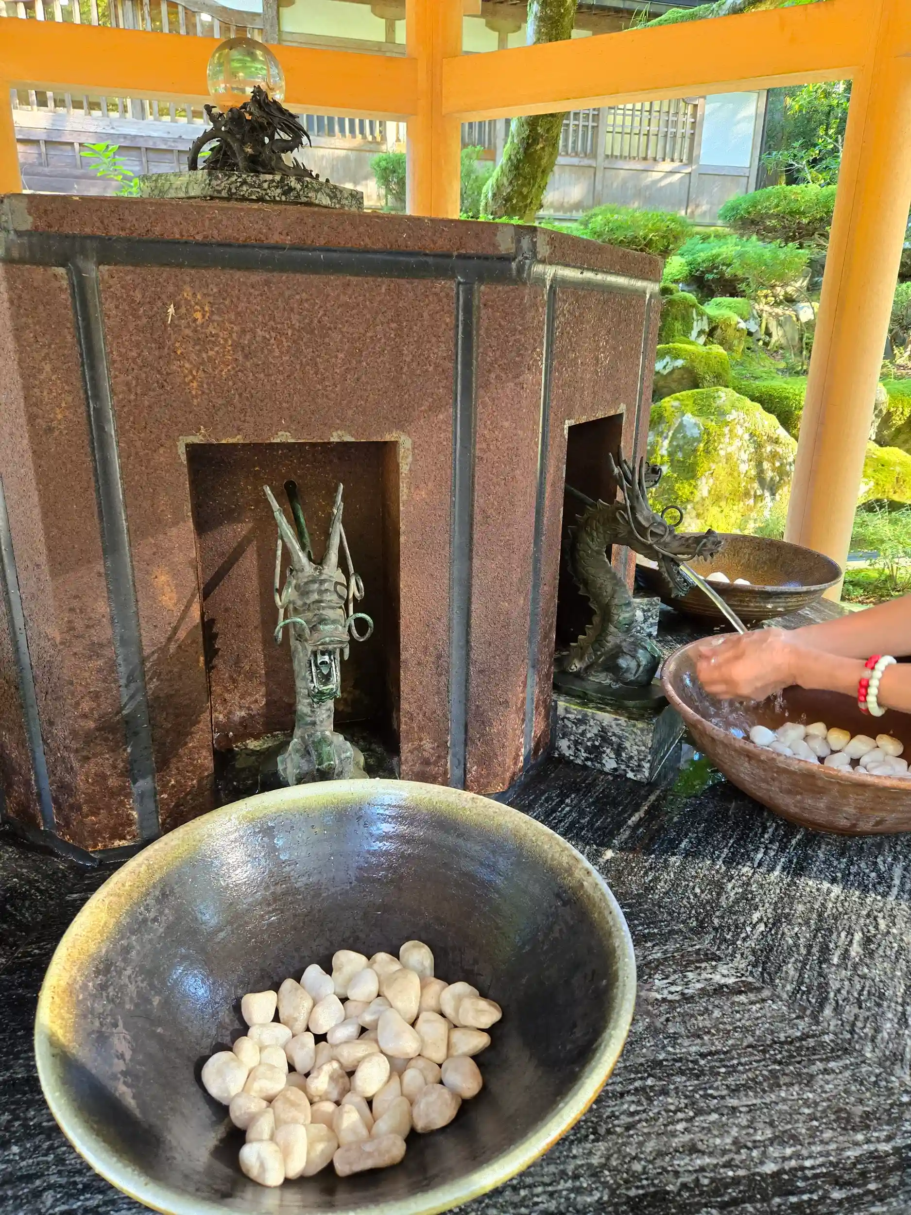 それなのに、龍の手水舎は手をかざしただけで水がでてくるのでちょっとビックリ。笑
