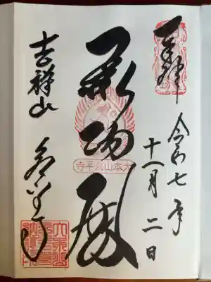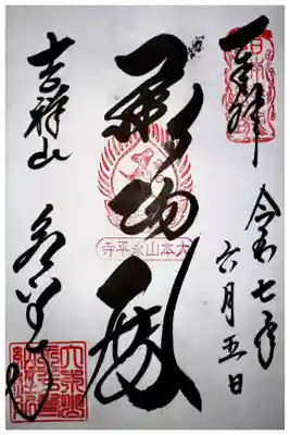 御朱印中央には「大本山 永平寺」の朱印が押されています。