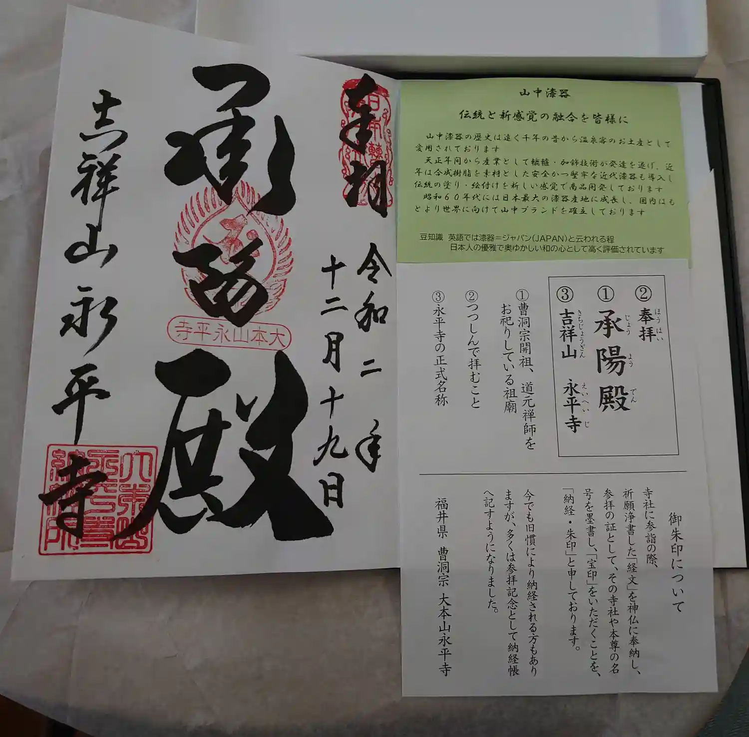 永平寺の御朱印・御朱印帳