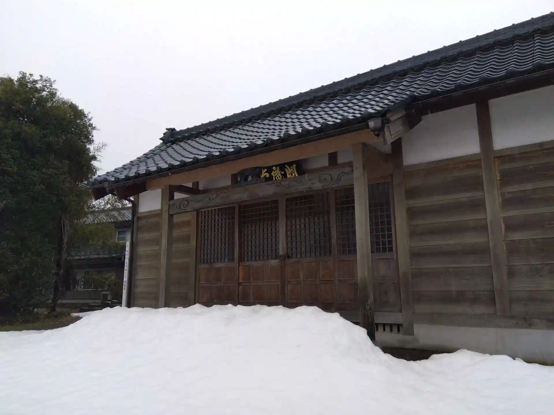 拝殿前は屋根からの雪で近づけず😰