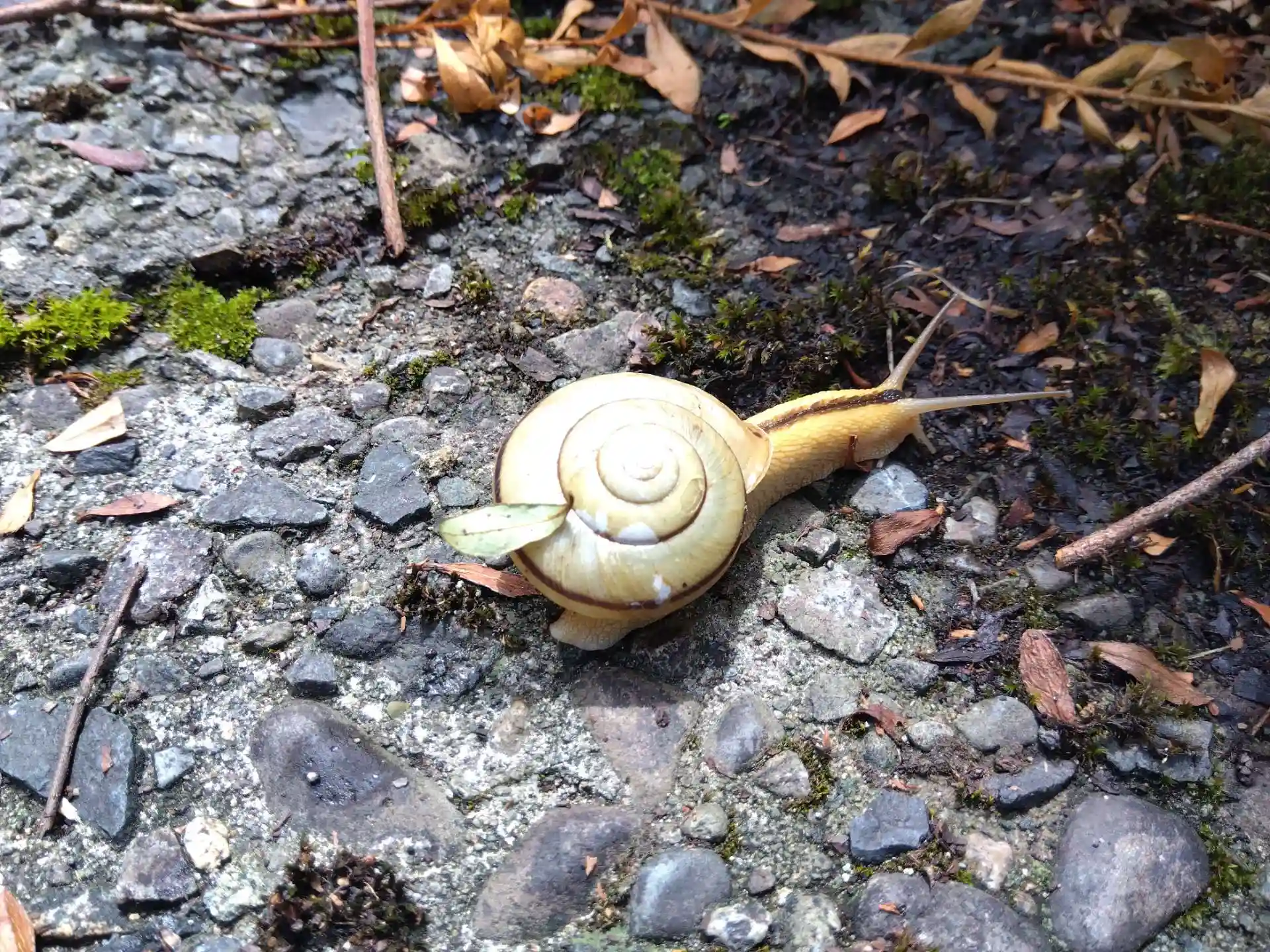 参道をカタツムリが横切りました🐌