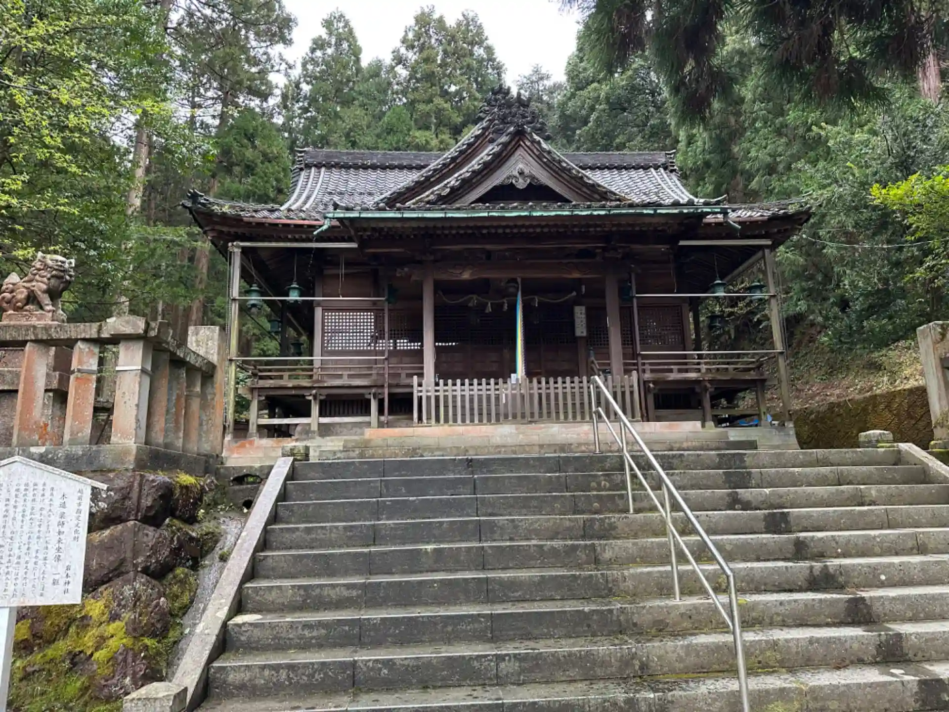 大瀧神社・岡太神社の一の鳥居から境内までの途中に立つ神社で、白山信仰を起源に持ちます。元々はこの地にあった薬師堂の末社・白山宮としてありましたが、神仏分離によって薬師堂は廃絶、近くの神社を合祀しながら、名前を変えながら現在に至ります。