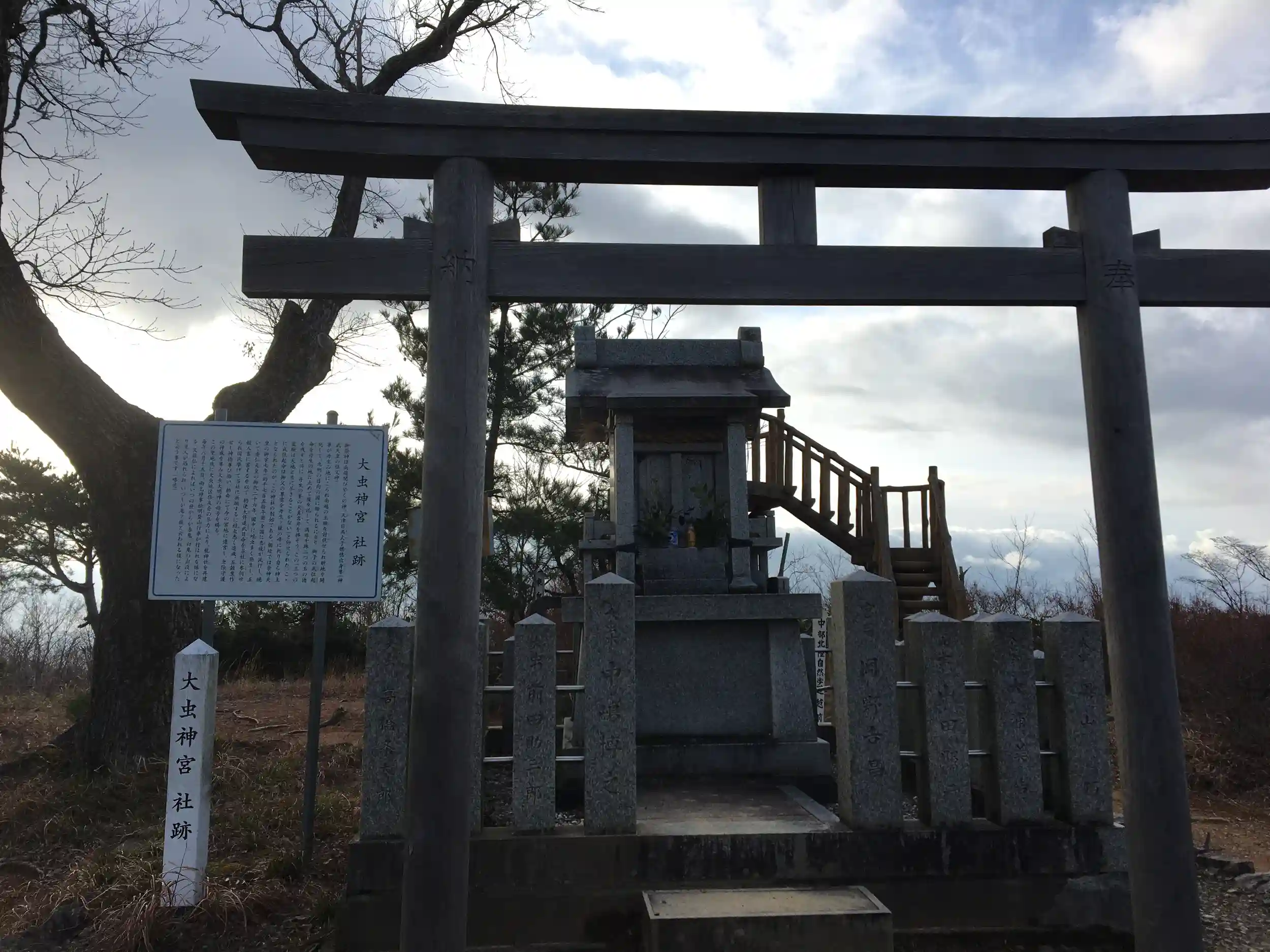 鬼が岳の山頂(533m)にある大虫神社。