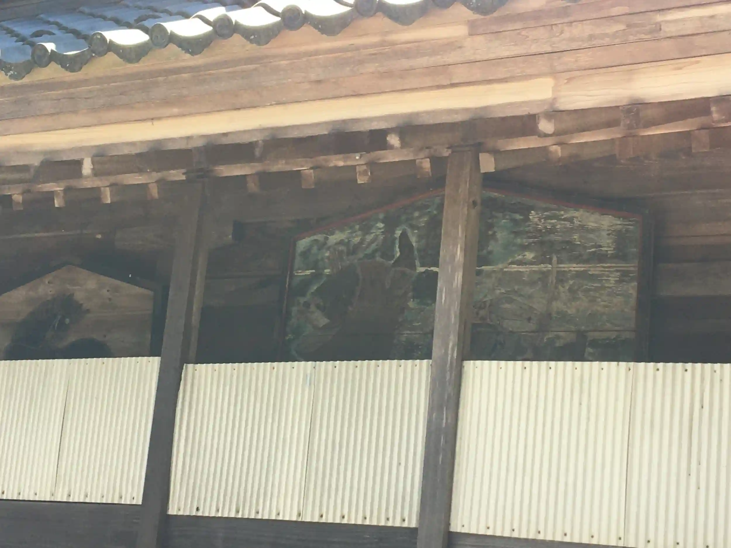 拝殿の横に書かれた絵。はっきり見えない(残念)。