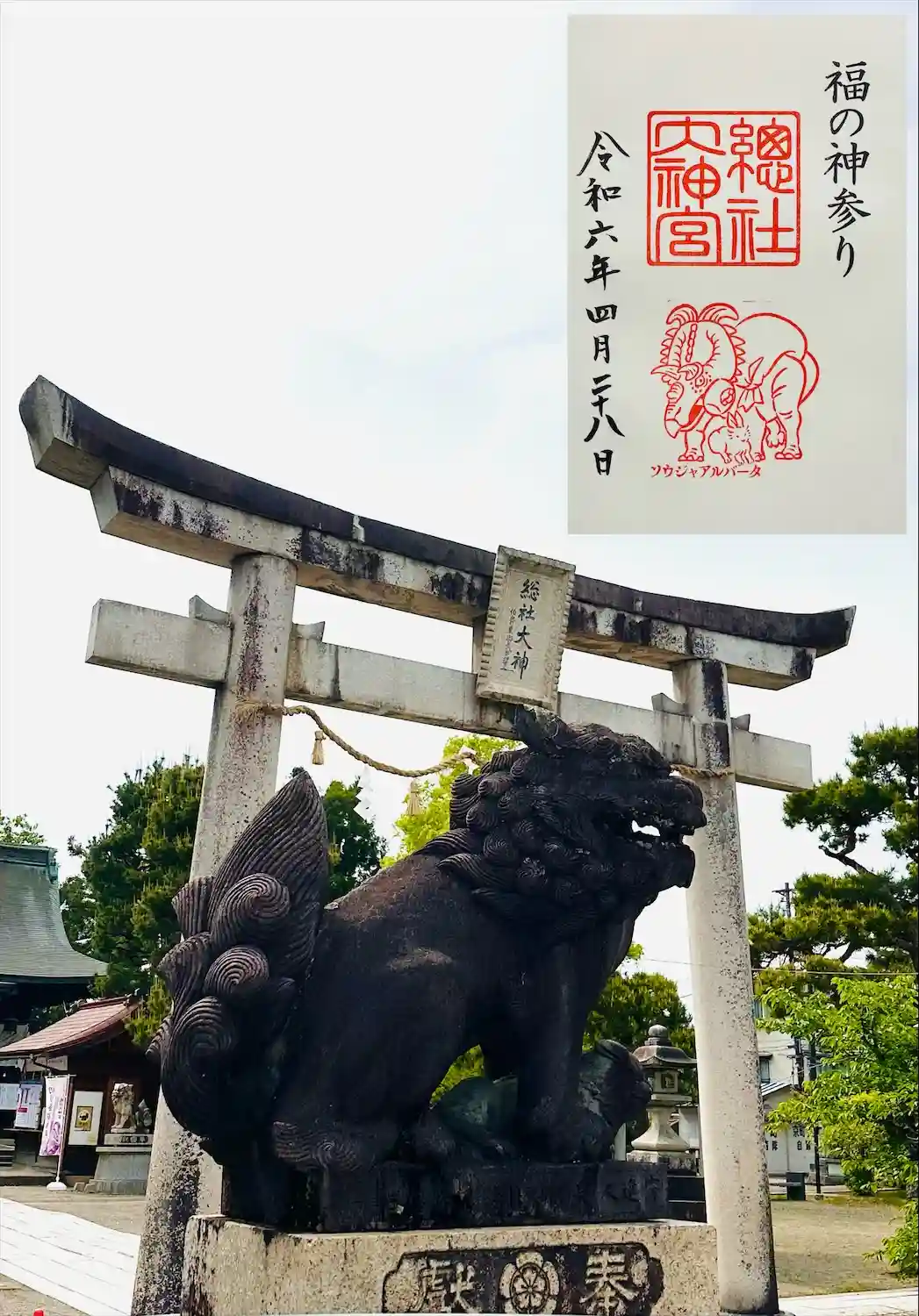 越前市の総社大神宮にて、御竜印をいただきました(全34社の15社目)🖌️