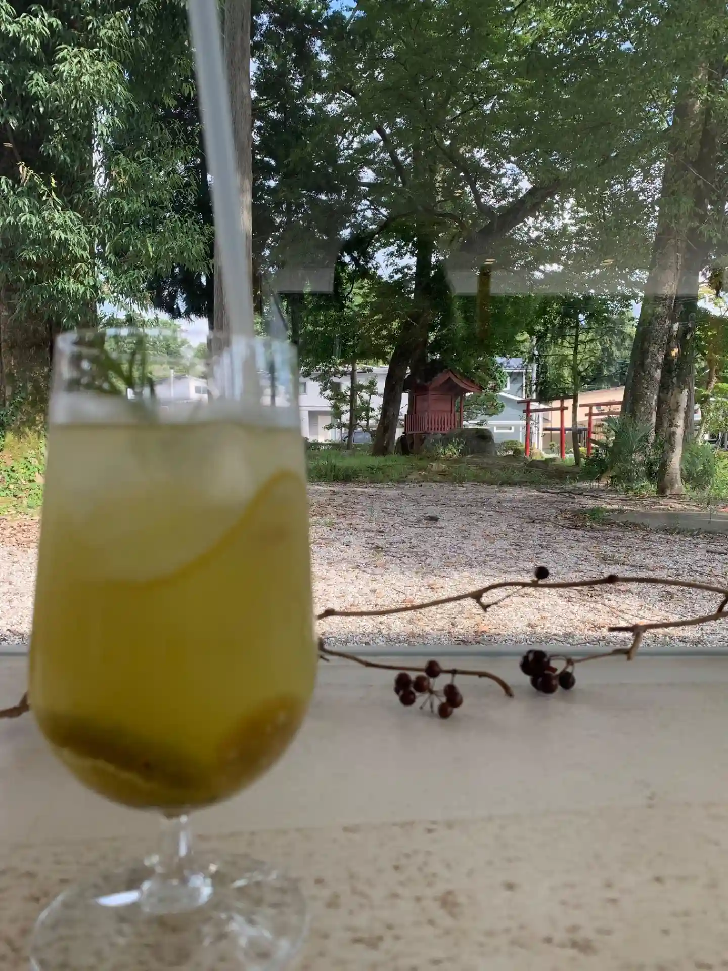 神社を眺めながら、マフィンとレモネードでランチ☘️