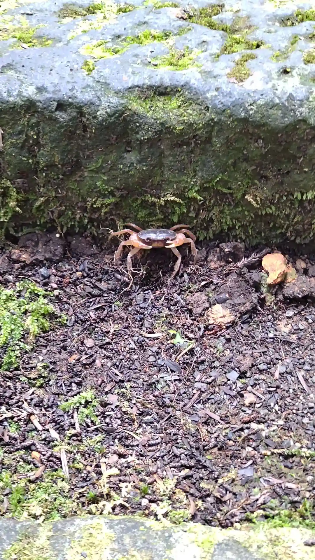 石段の途中で🦀のお出迎え