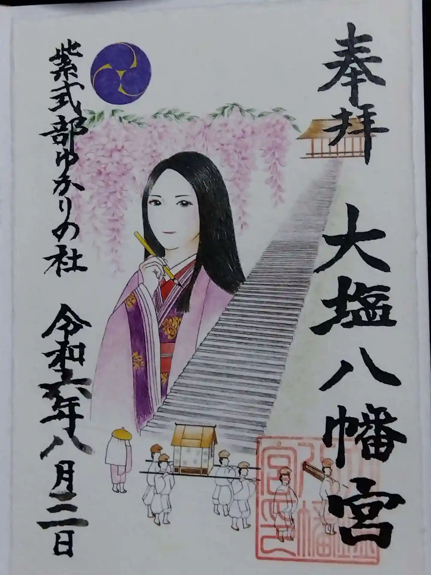 新たに授与されてる紫式部と木曽義仲の和紙御朱印(厚みあり)をいた…