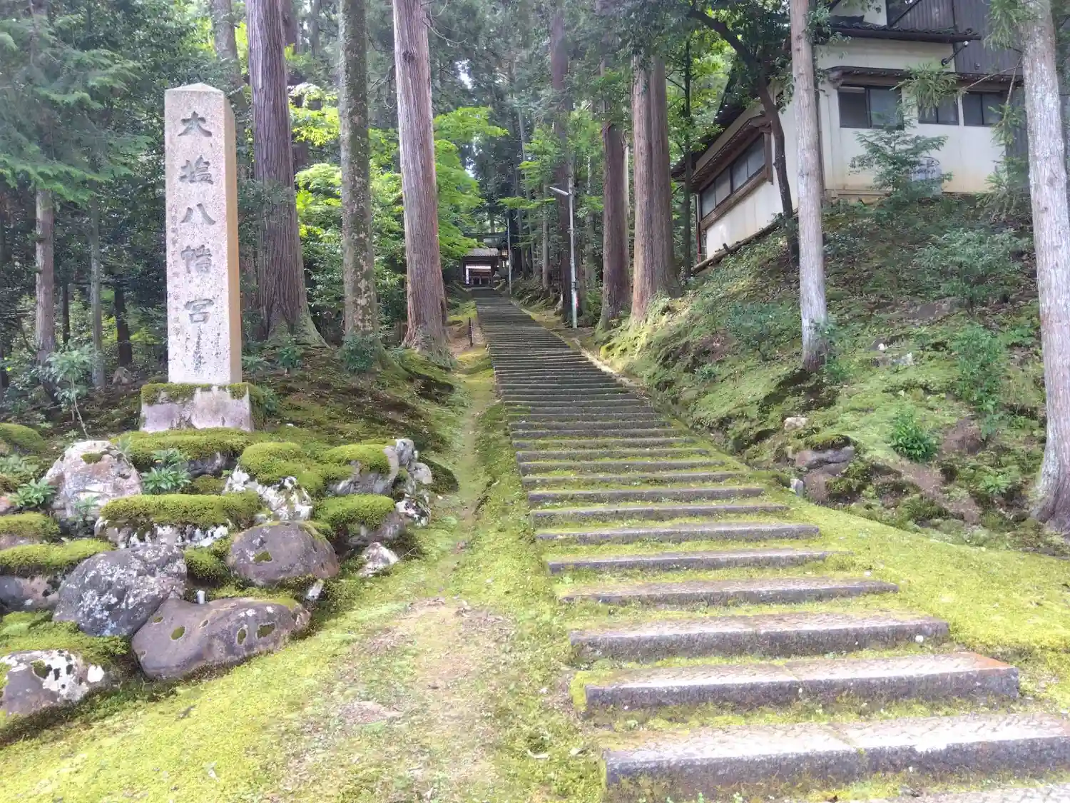 長い石段の途中(右側)に宮司さん宅