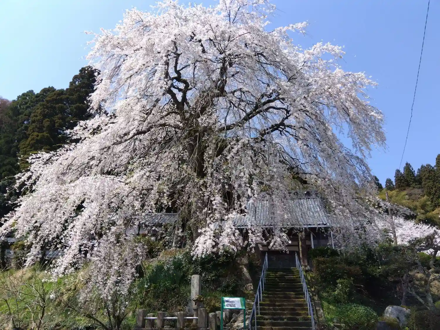 枝垂れ桜が有名な越前町蝉口の日蓮宗法華寺卍