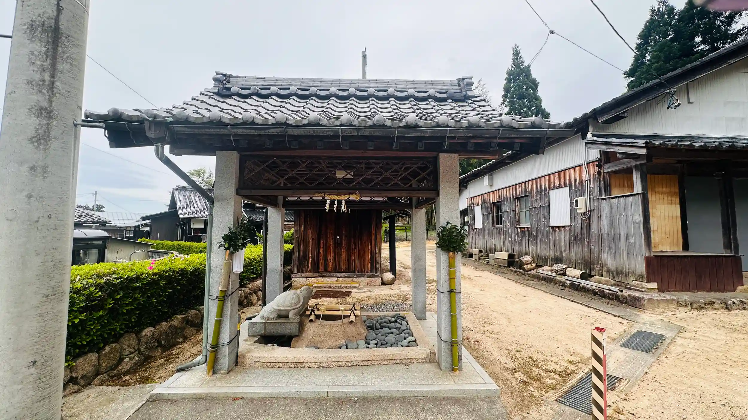 手水は亀、鳥居には十六弁の菊の紋章があります