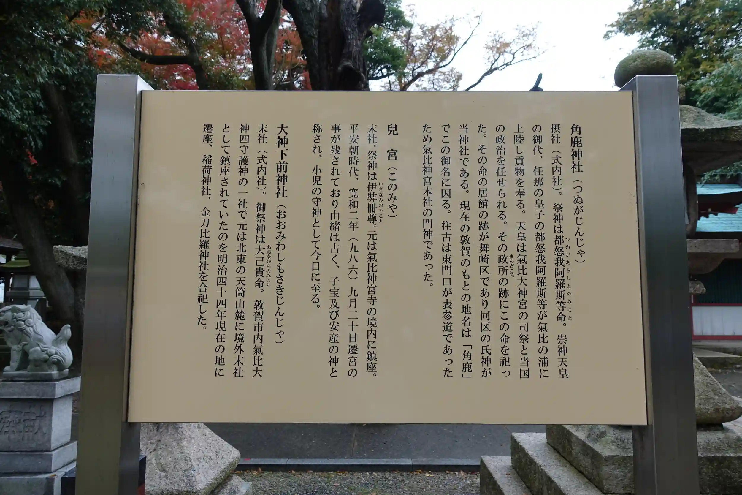 気比神宮は社伝によりますと、神功皇后が気比神の神託を受けて仲哀天皇8年(199年)3月に創建された
