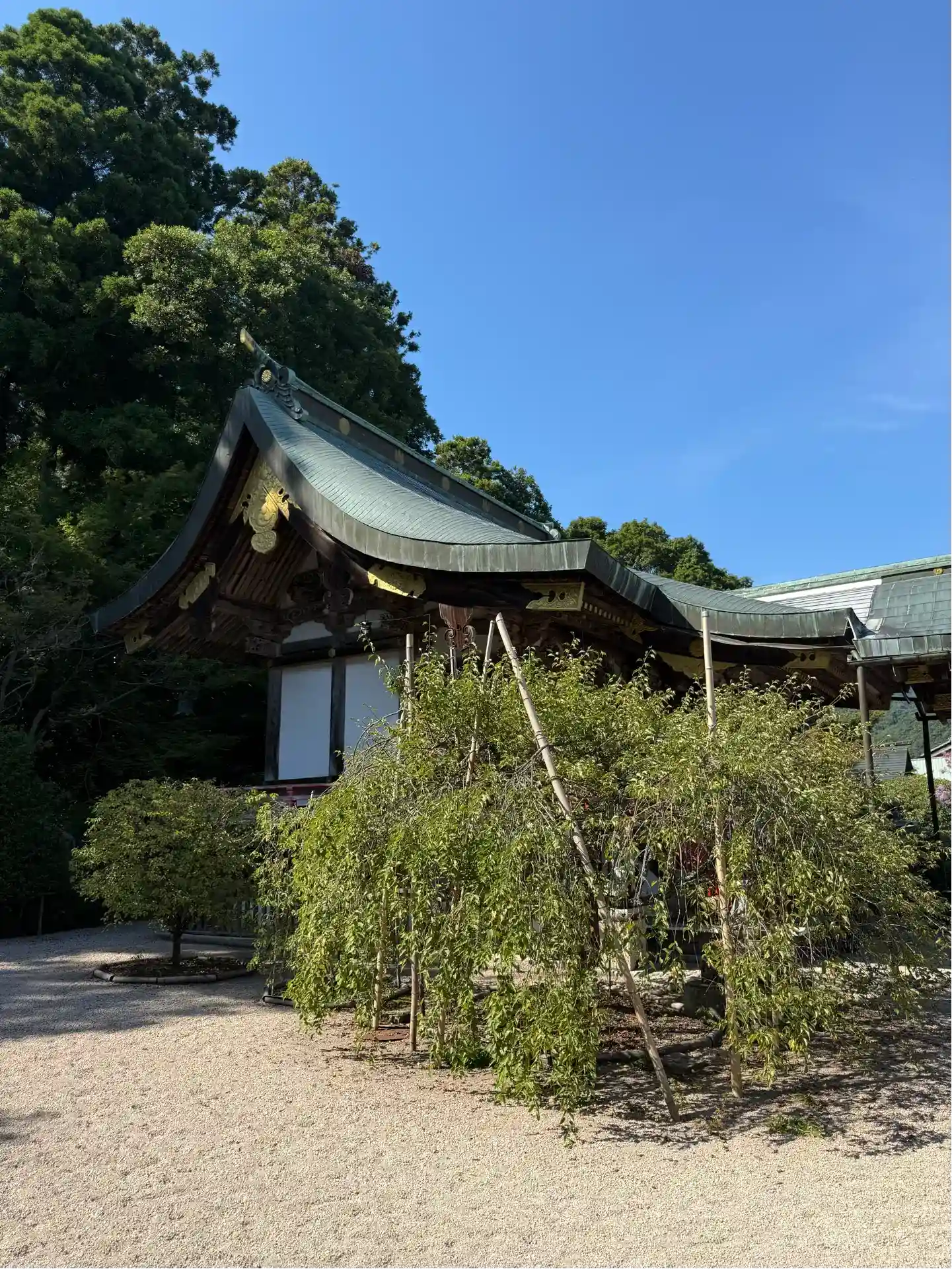 この由緒をもって、奈良朝時代の大宝3年(703)、勅をもって社殿が修造され、神功皇后、仲哀天皇、応神天皇、日本武命、玉妃命、武内宿禰命が併せ祀られたという。