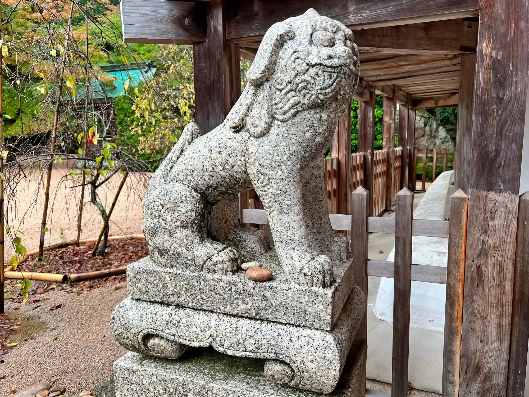 最後に、中門近くからの景色。参拝時10月10日時点で、数本の樹木がほんのり紅葉。