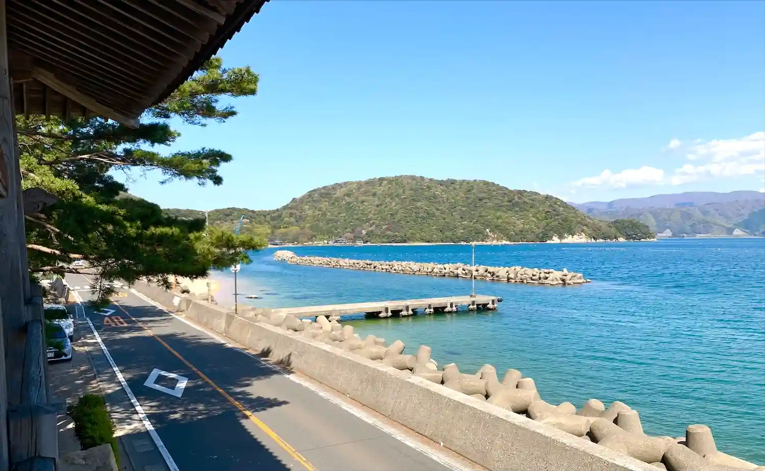海沿いの道に並行して参道があり、途中で垂直に左に折れて本殿