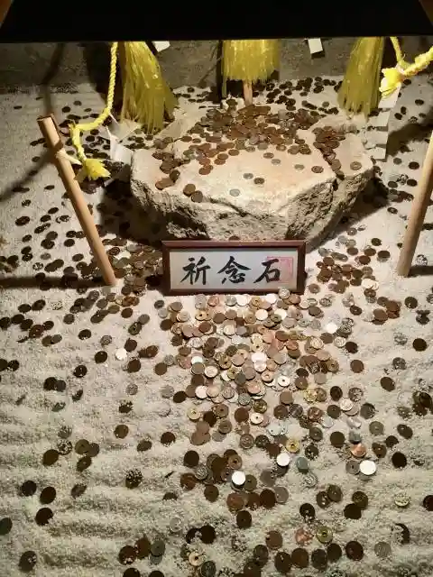 賽銭が石に乗ると願いが叶うと言われています。