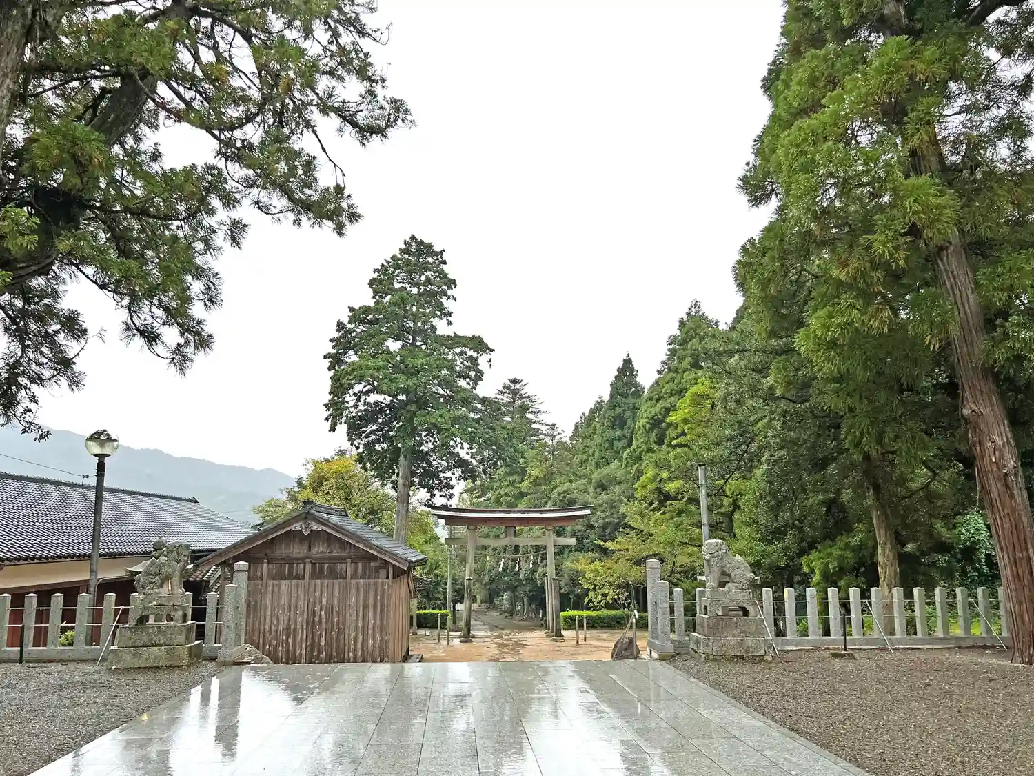 拝殿から振り返って境内全景。整備したてでキレイな参道。