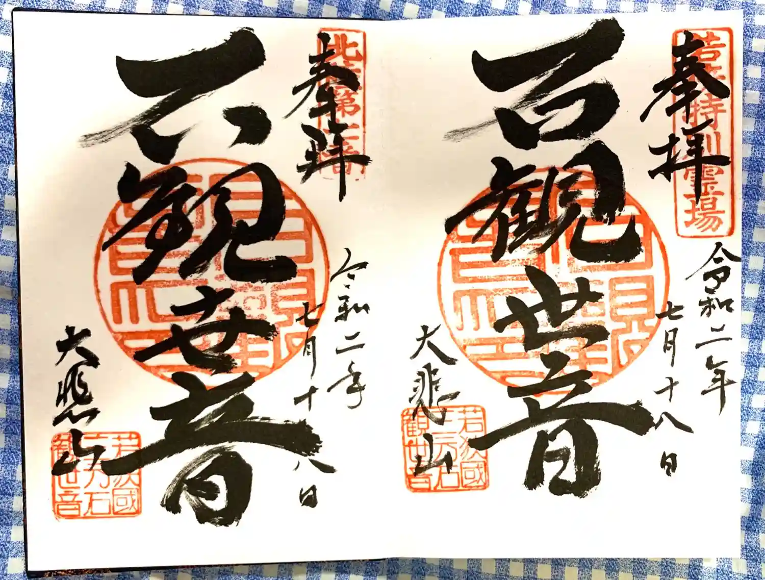若狭観音霊場特番札所の御朱印と来年ご開帳までの特別御朱印。ご開帳時に配布される御朱印を並べる事により完成する凝った作りになってます。