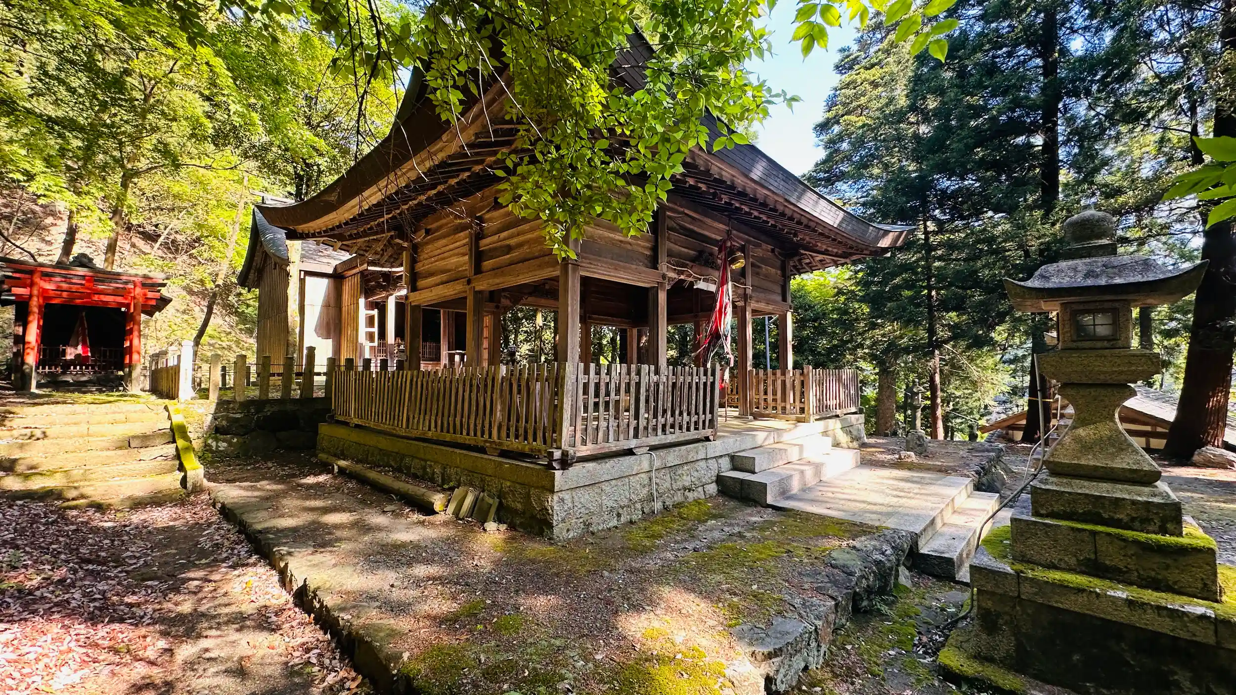 熊川宿の氏神様 熊川城への登城口で神社の石垣、石段は当時の物だそうです。祭神は、彦火々出見尊、白鬚明神、小浜藩主酒井忠勝公、山の神が合祀されているということです。