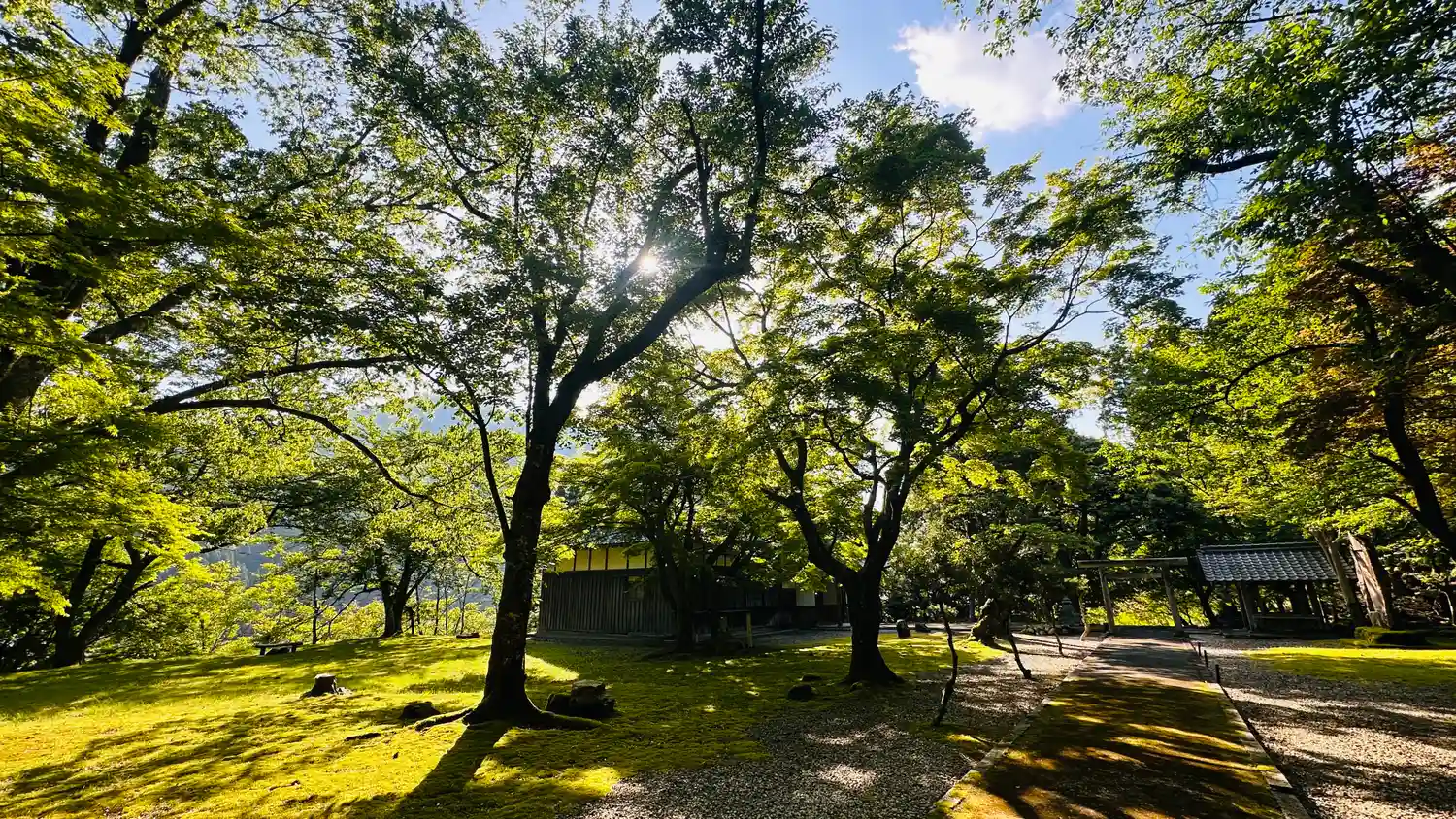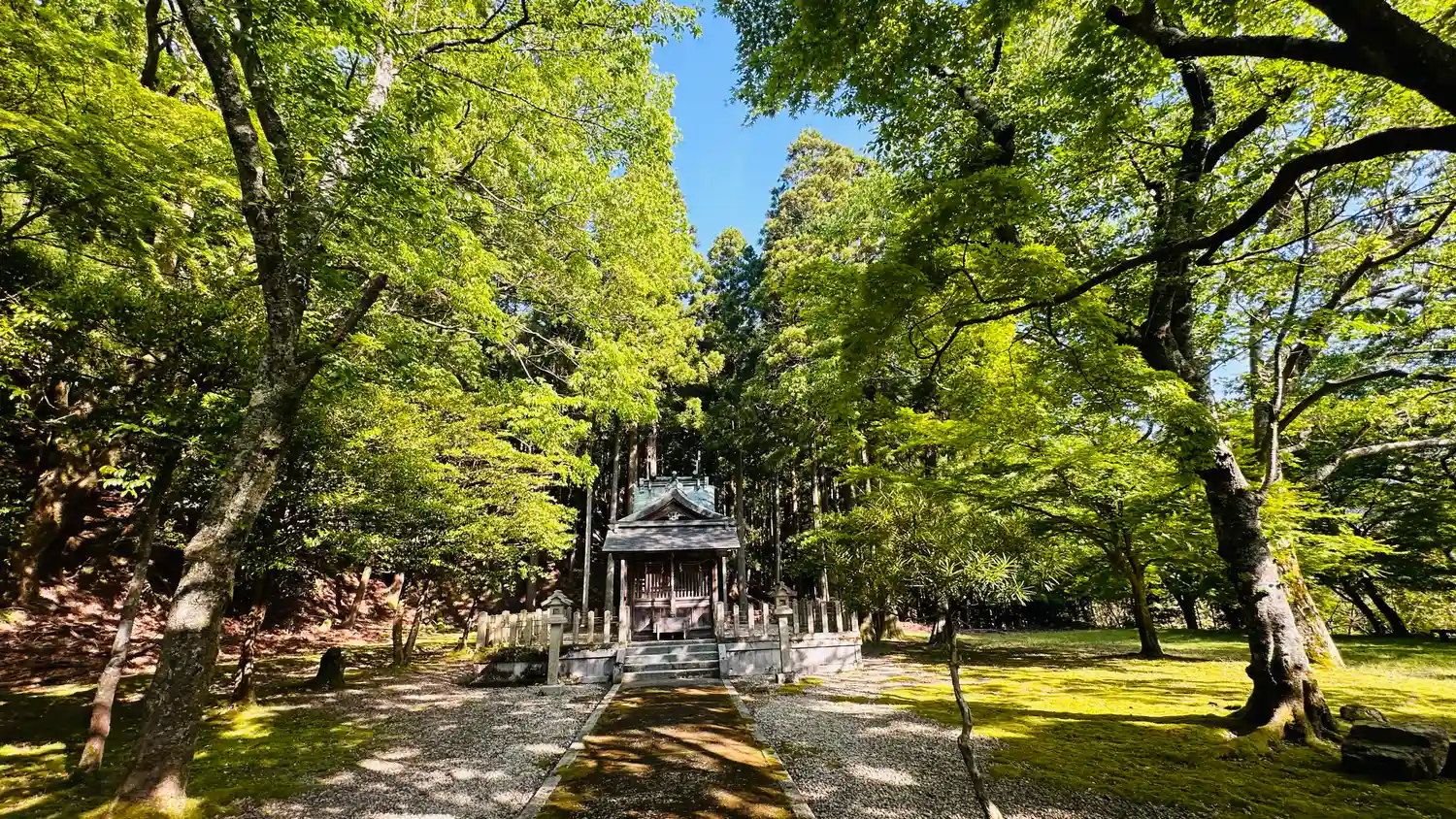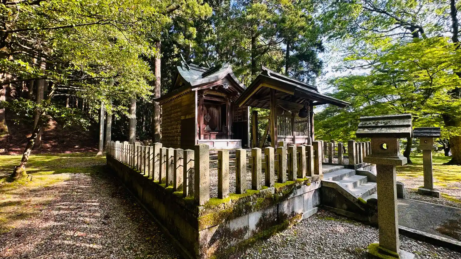 御祭神 は、松木莊左衛門長操命、境内は緑で一杯、あおもみじ、苔、新緑の木々とても静かで落ち着きます…