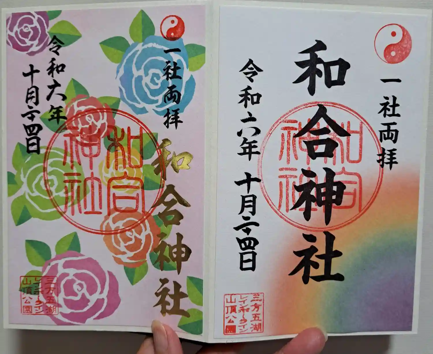山頂は秋薔薇の季節🌹薔薇の限定御朱印を頂きました。駐車場にあるお土産屋さんで頂けます。