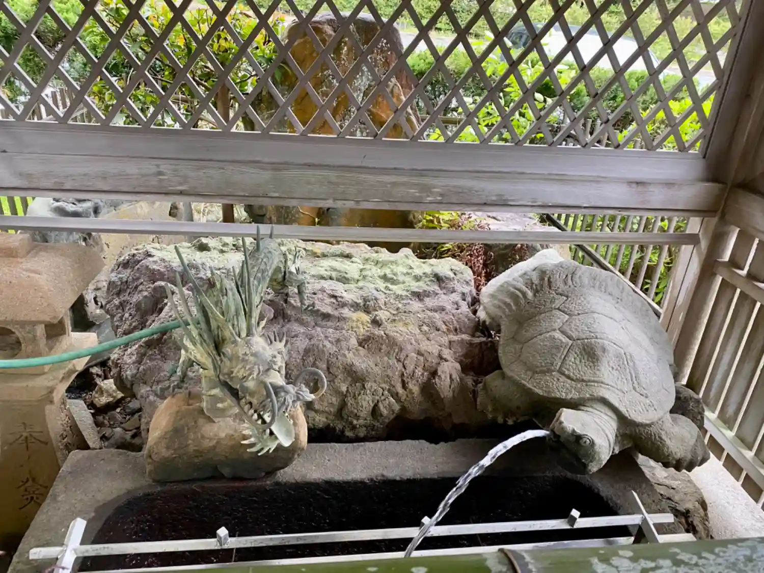 手水舎の水の出口は<龍>と<亀>。