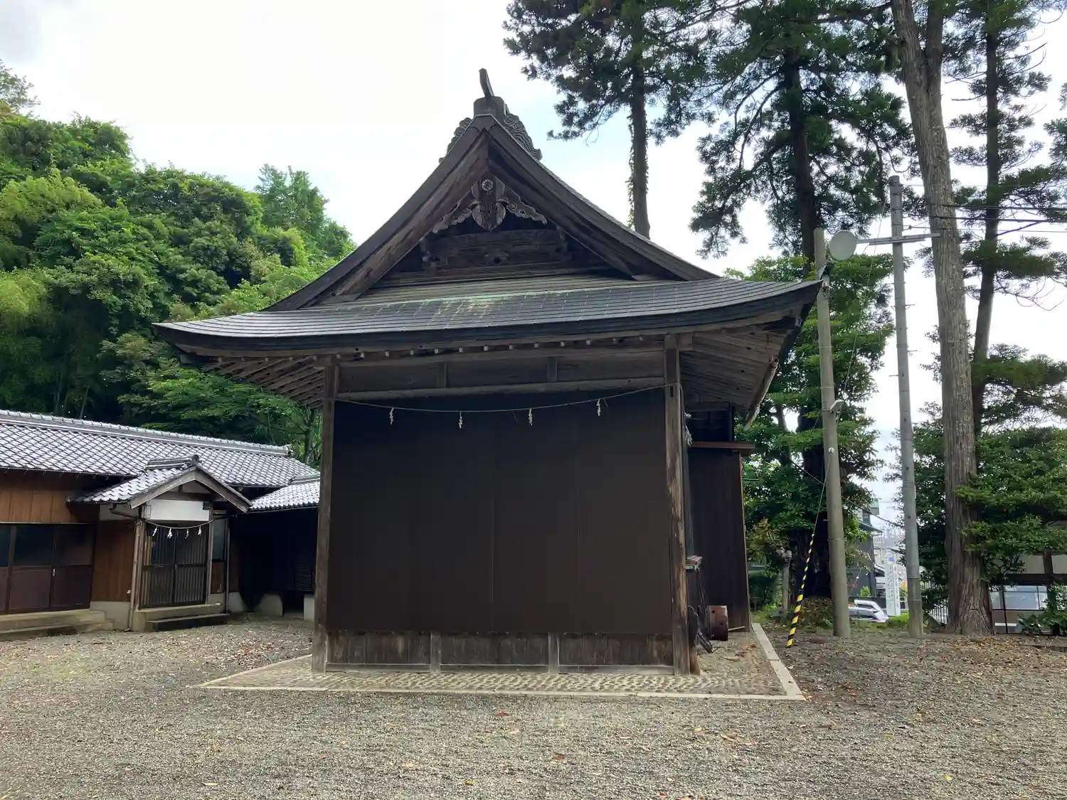 拝殿から振り返って境内全景。