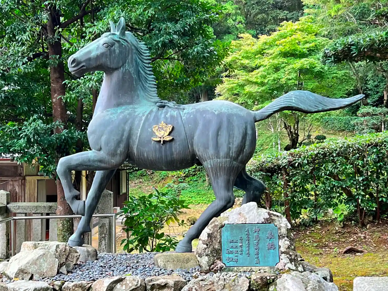 階段上左側の狛犬の少し奥にある<神馬像>。