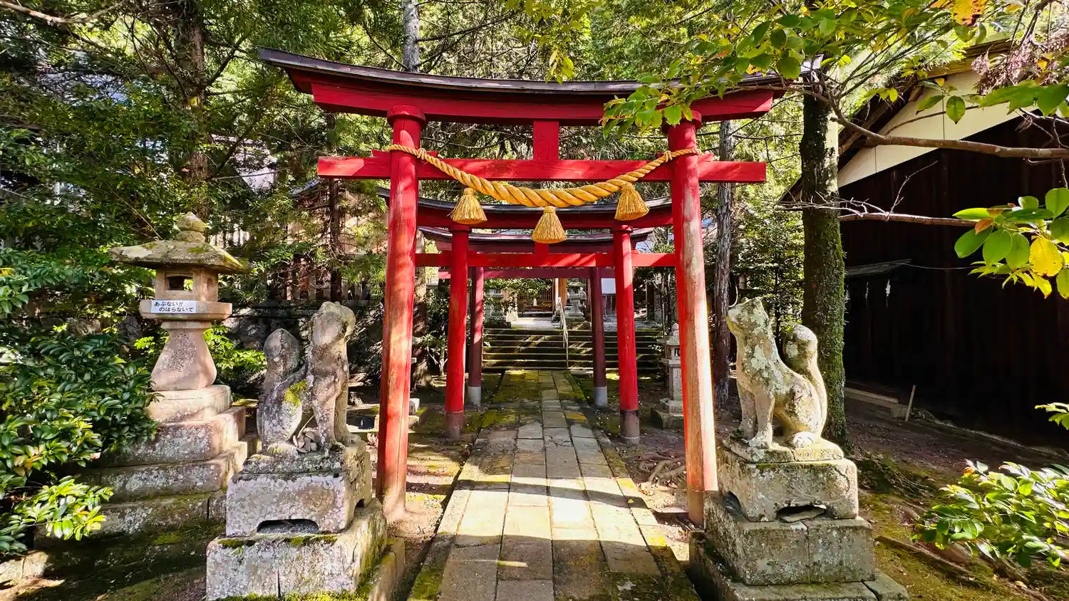 本殿横の境内社群にも鳥居があるので見に行ってみた。