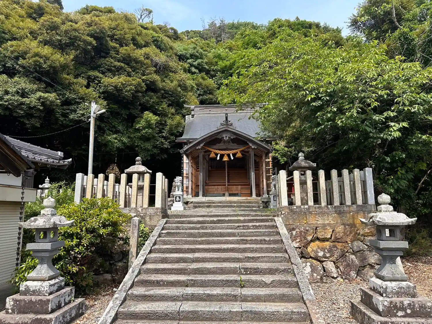 小浜城の鬼門に当たる場所に鎮座されています。本殿両側には出雲構えの狛犬と目新しい狛犬が迎えてくれま…