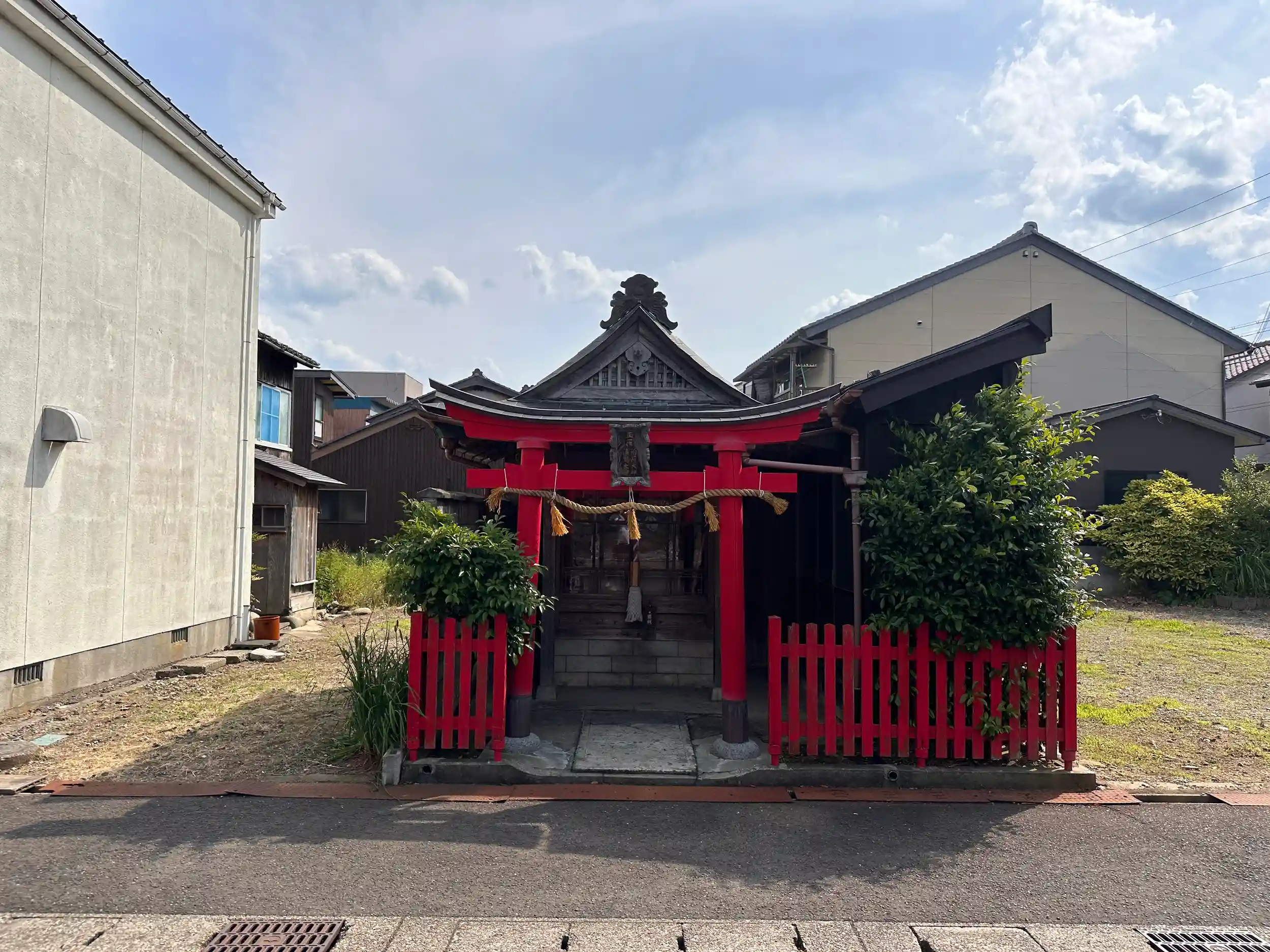 バス停のすぐ後ろに鎮座されています、小さいですが存在感は抜群で朱色が浮かび上がってきます