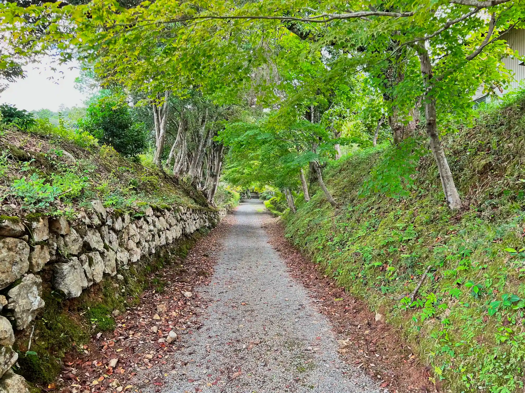 仁王門をくぐったところからの眺め。参道に沿って古木が立ち並んでいる。マイナスイオンを感じる、気持ちが良い参道。