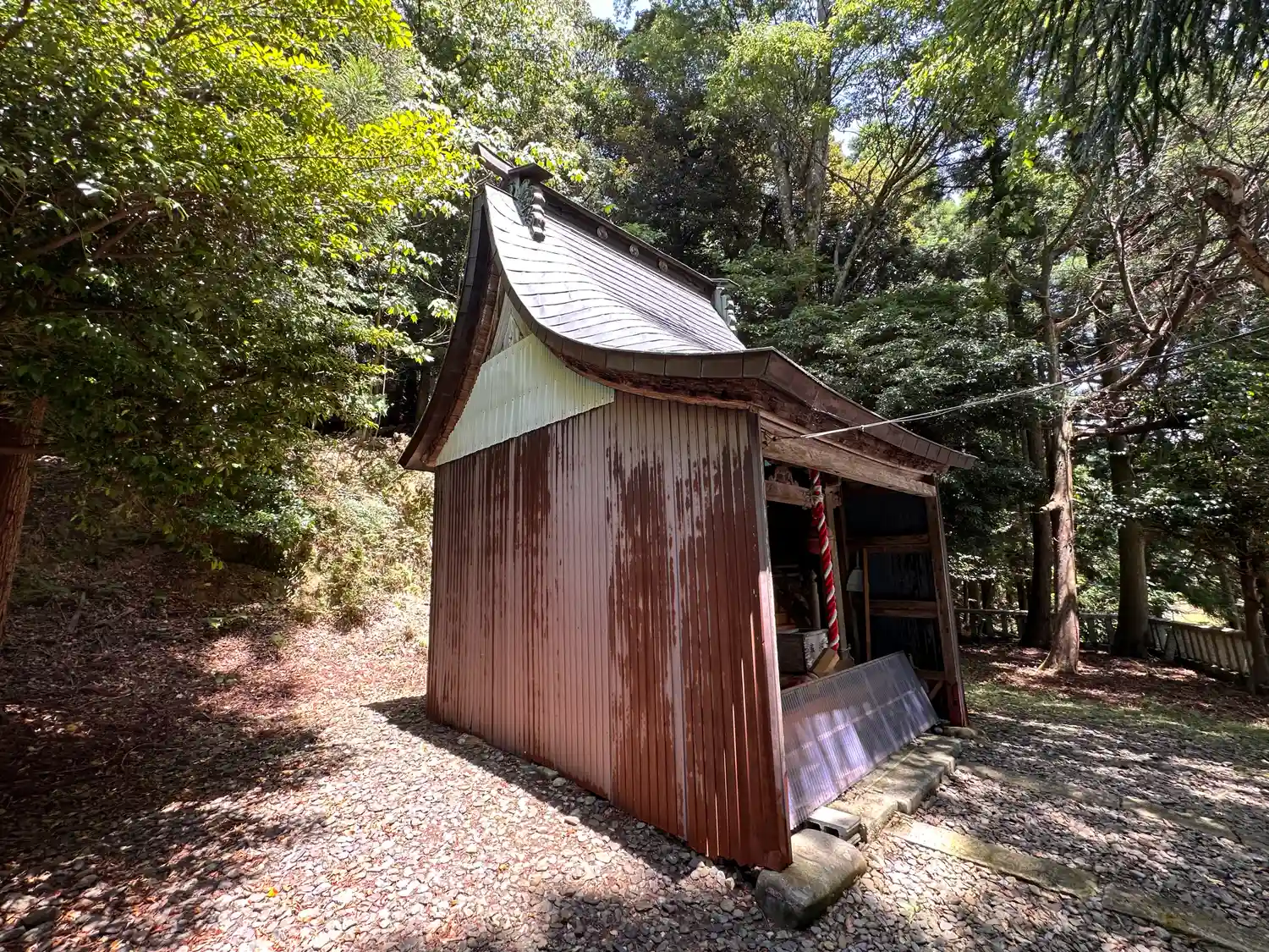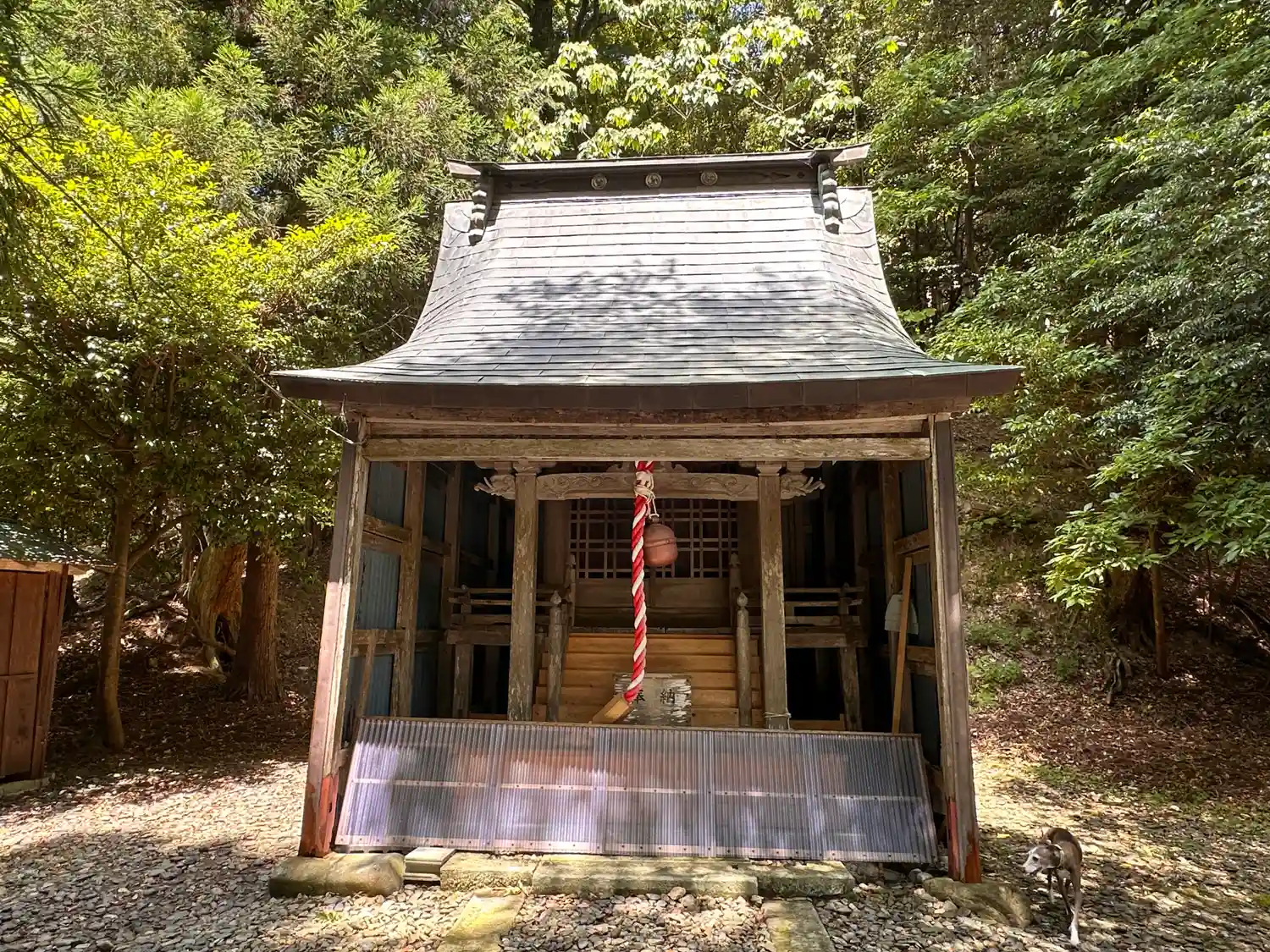 県道23号線の行き止まりの手前で集落の一番奥に鎮座されています、松永川のすぐ近くです。