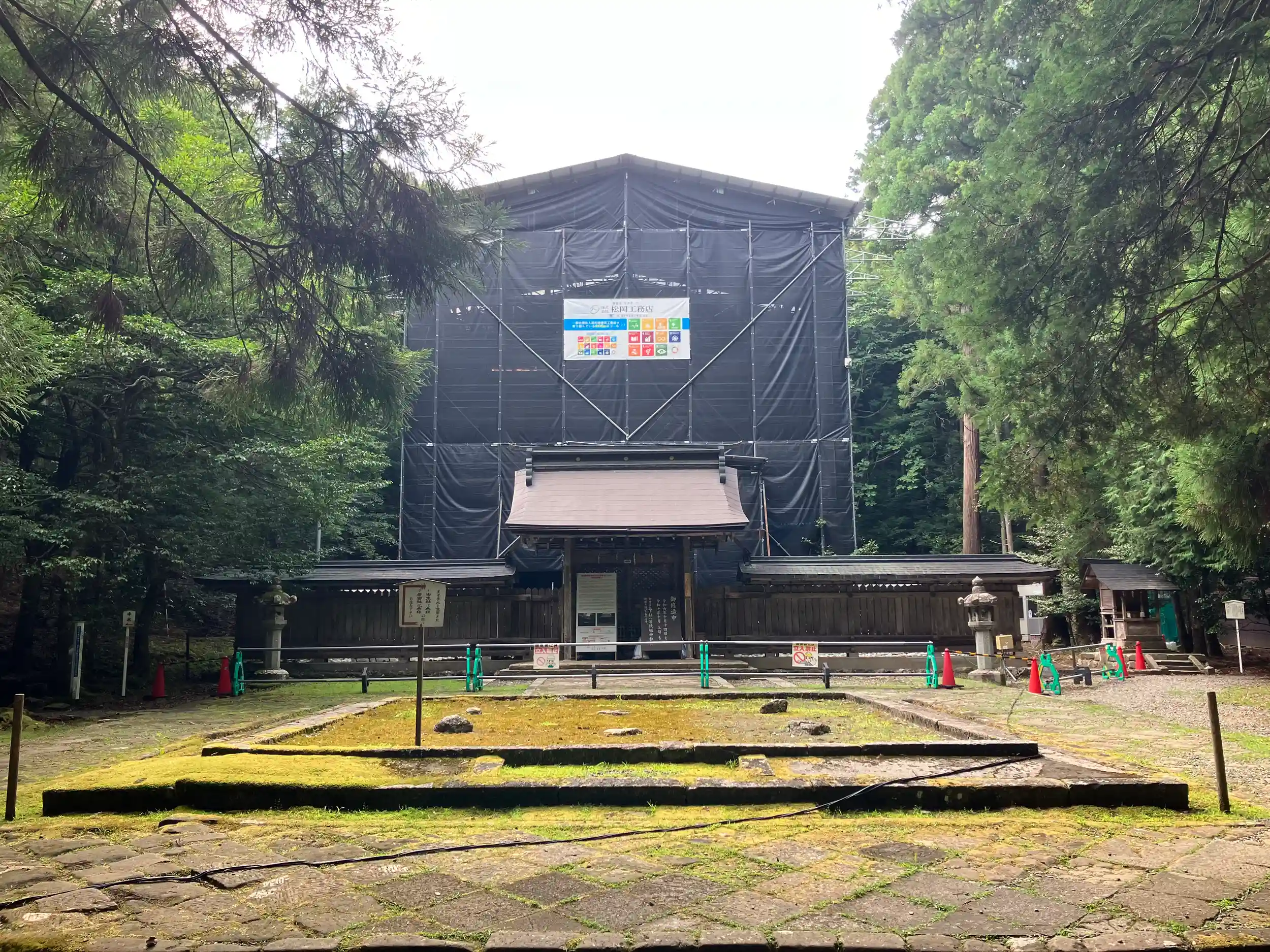 本殿が修復中で、現在下社に仮殿が設けられている。