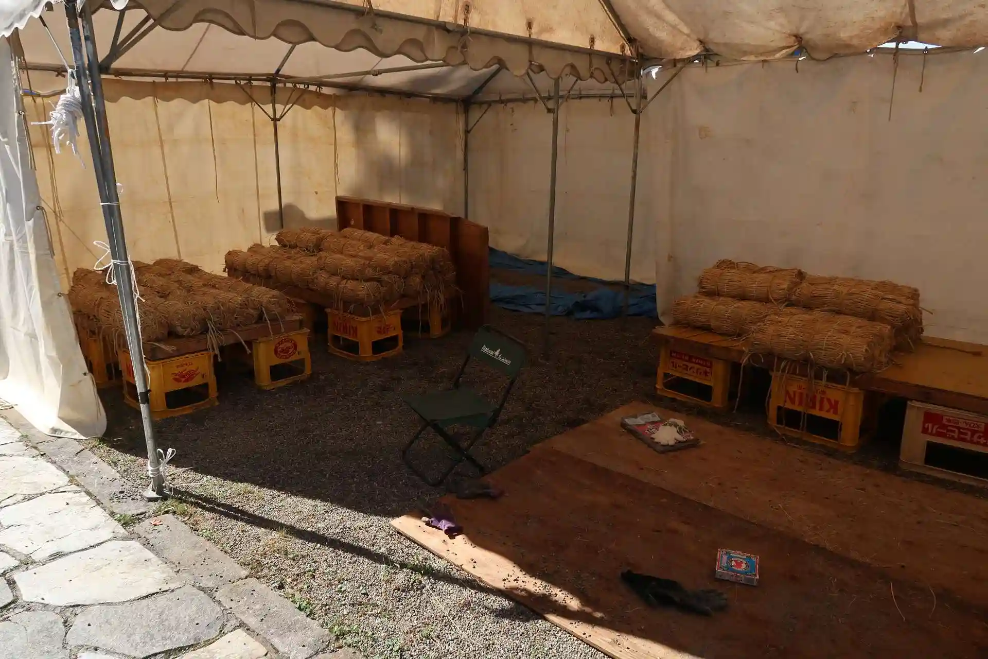八坂神社の秋祭り(9月第2土曜日?)に100年以上の歴史がある放楽相撲(天領相撲)が行われるそうで、矢倉や土俵造りの準備をされている様子でした(どなたもいらっしゃいませんでしたが)。この相撲は日本相撲協会も認定する由緒ある行事との事です。