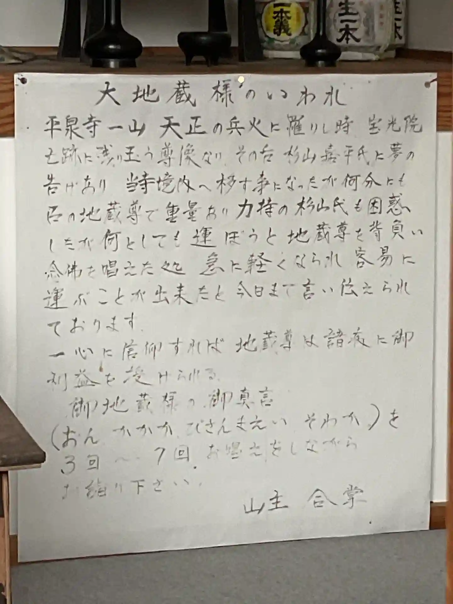 本堂にあった縁起