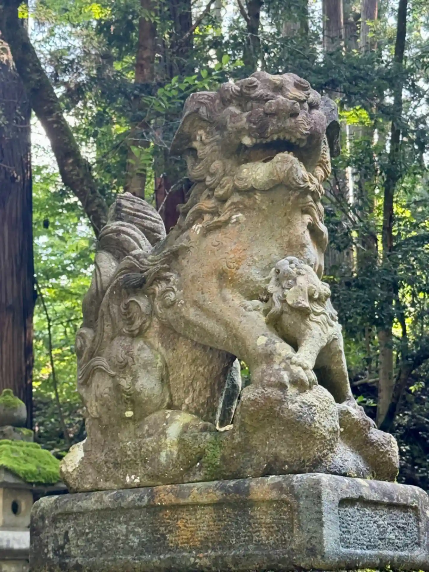 多少陽は翳っているが暑い中参拝。石段の昇降で汗が滴る。苔とスラリと伸びた木々が見事。