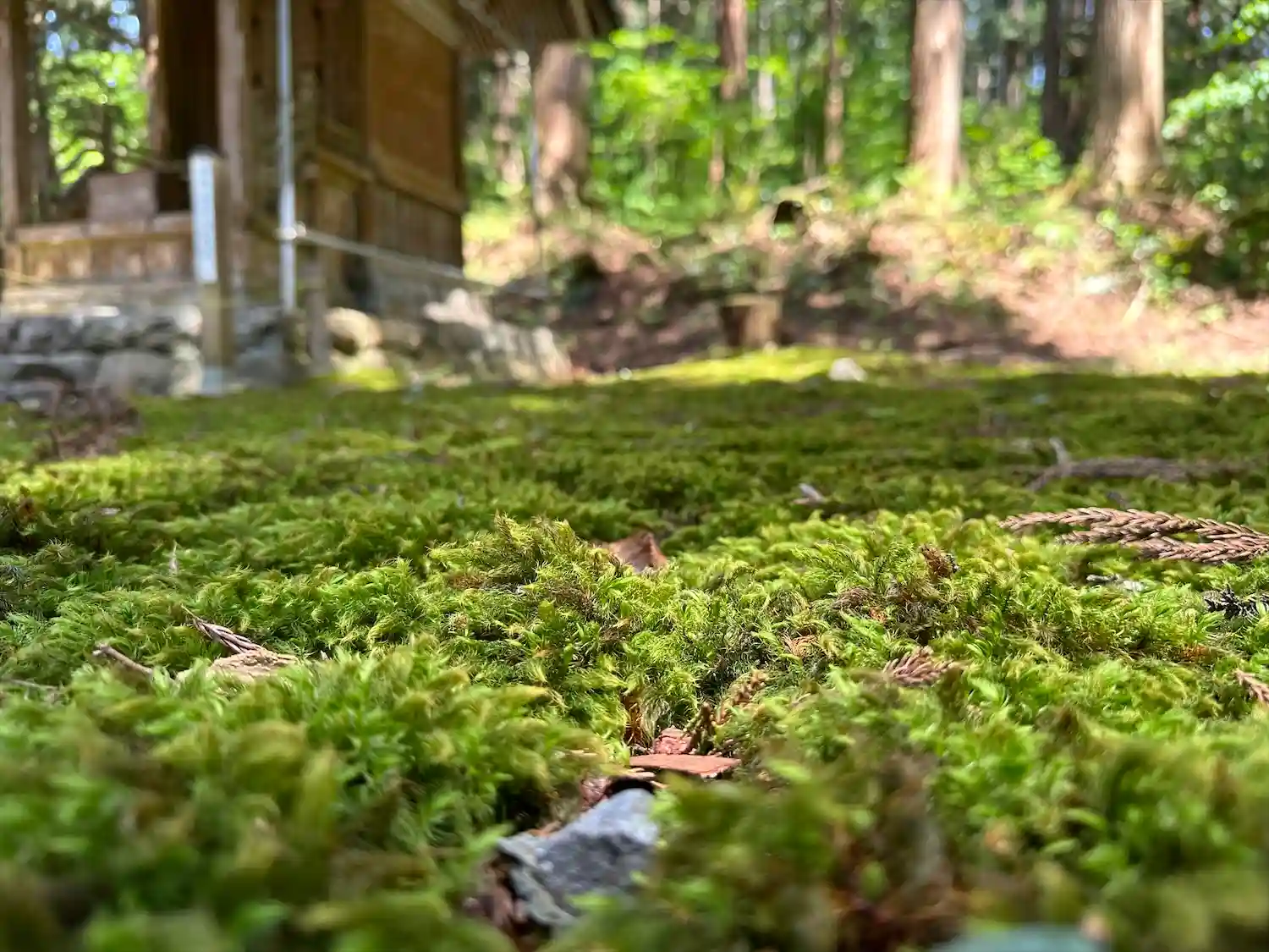 拝殿前に広がる苔。