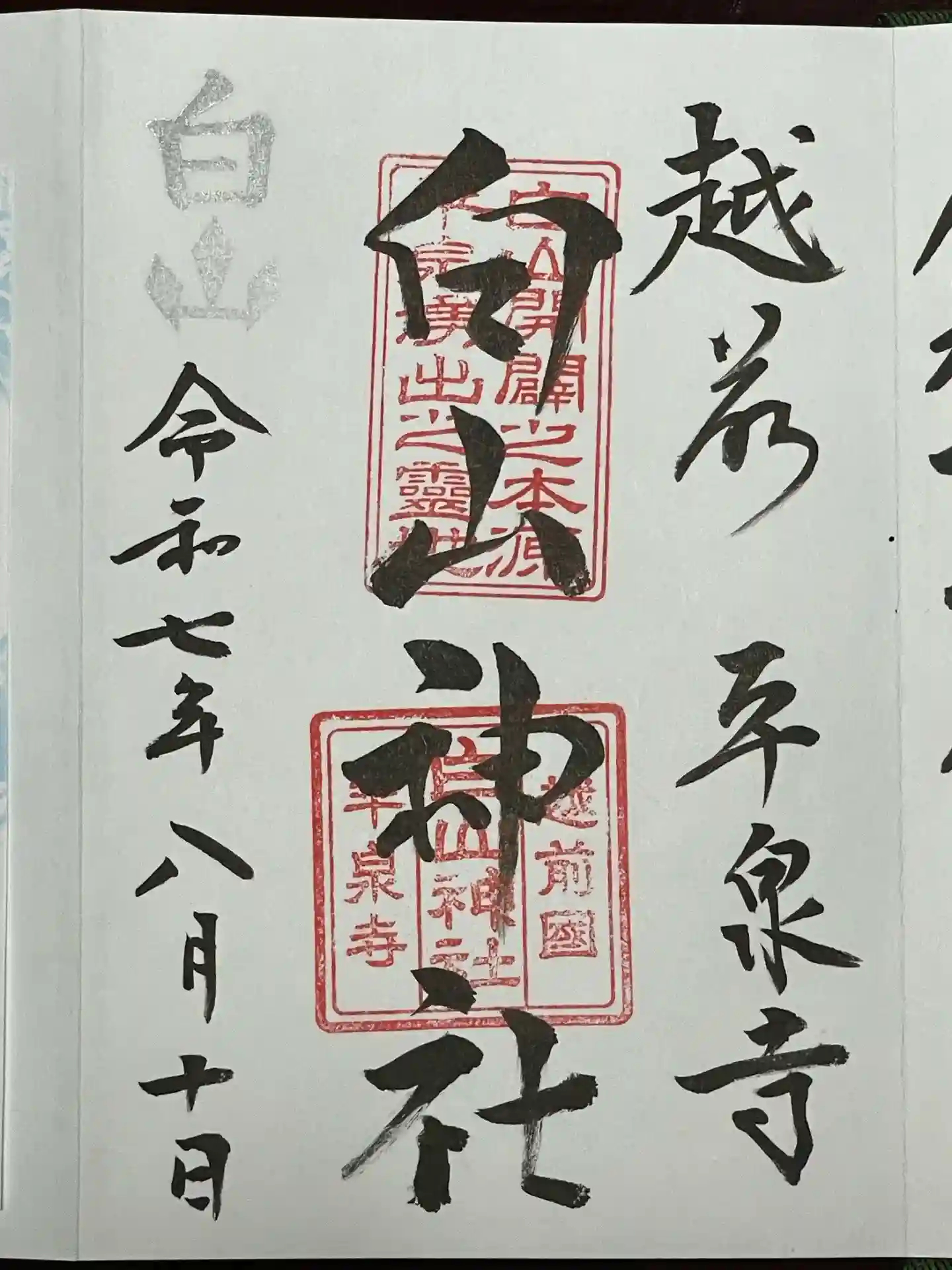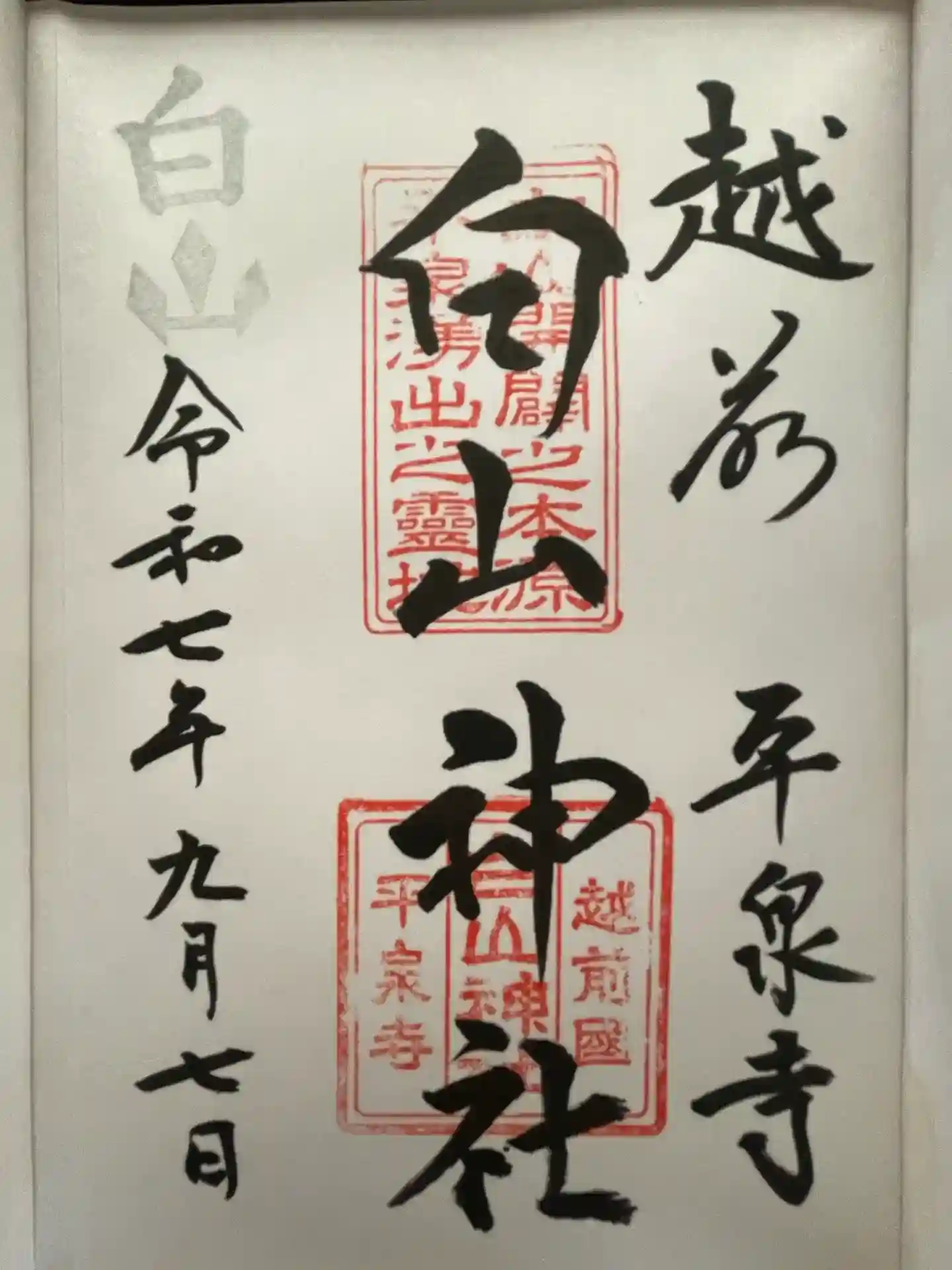 平泉寺白山神社の御朱印