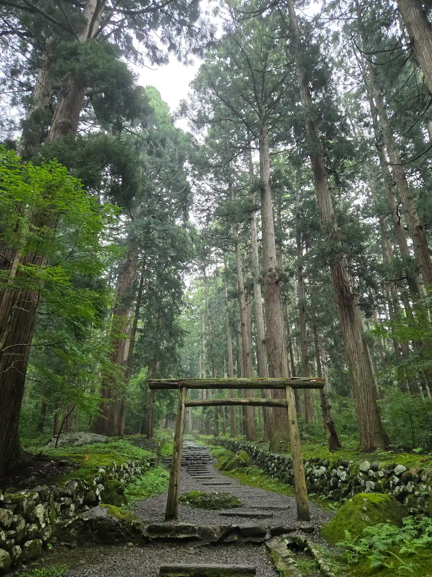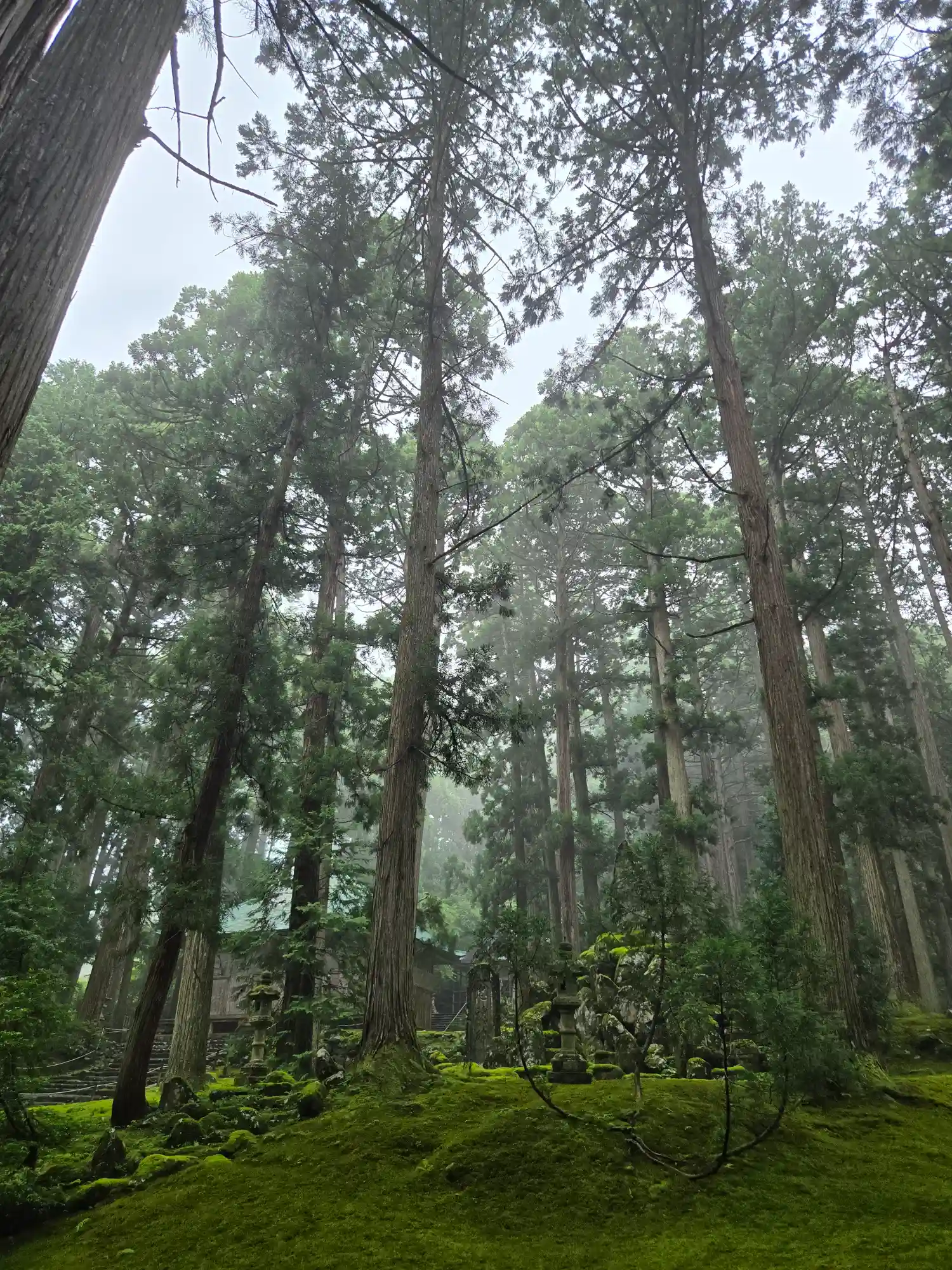 高い木々と一面の苔に、雨も相まってとても美しい世界でした。