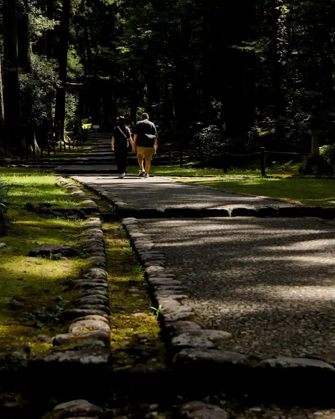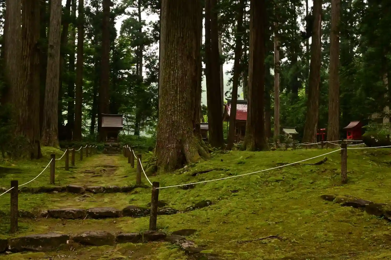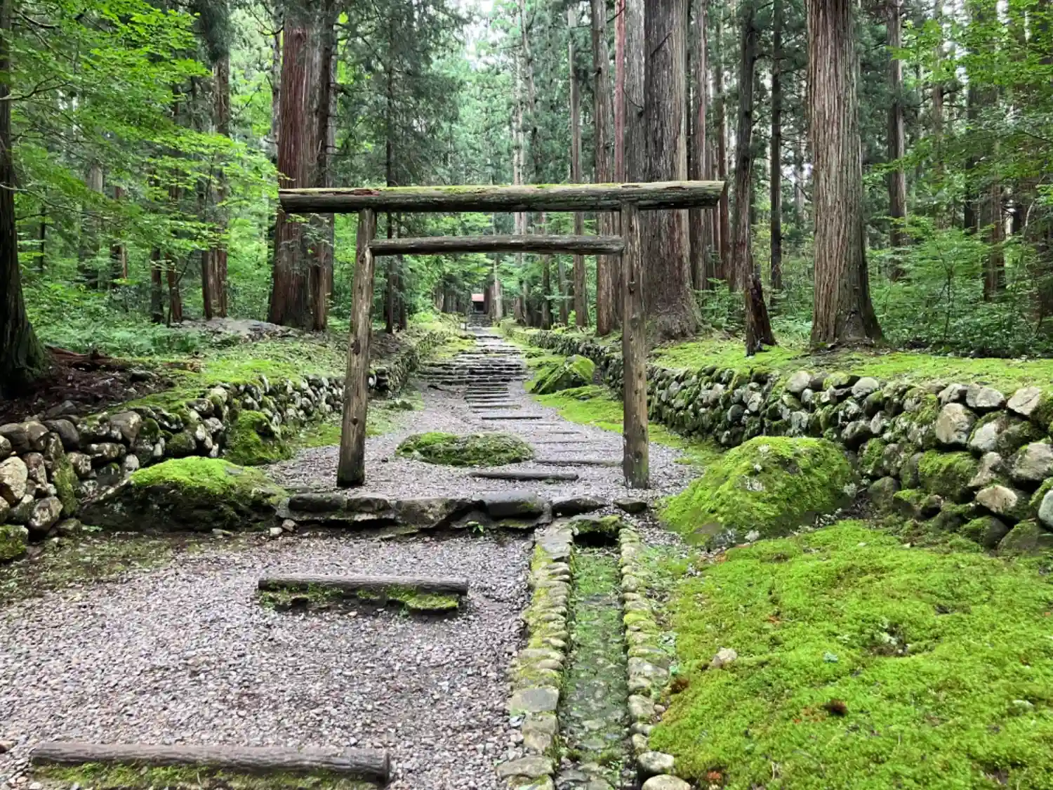 苔に囲まれた参道