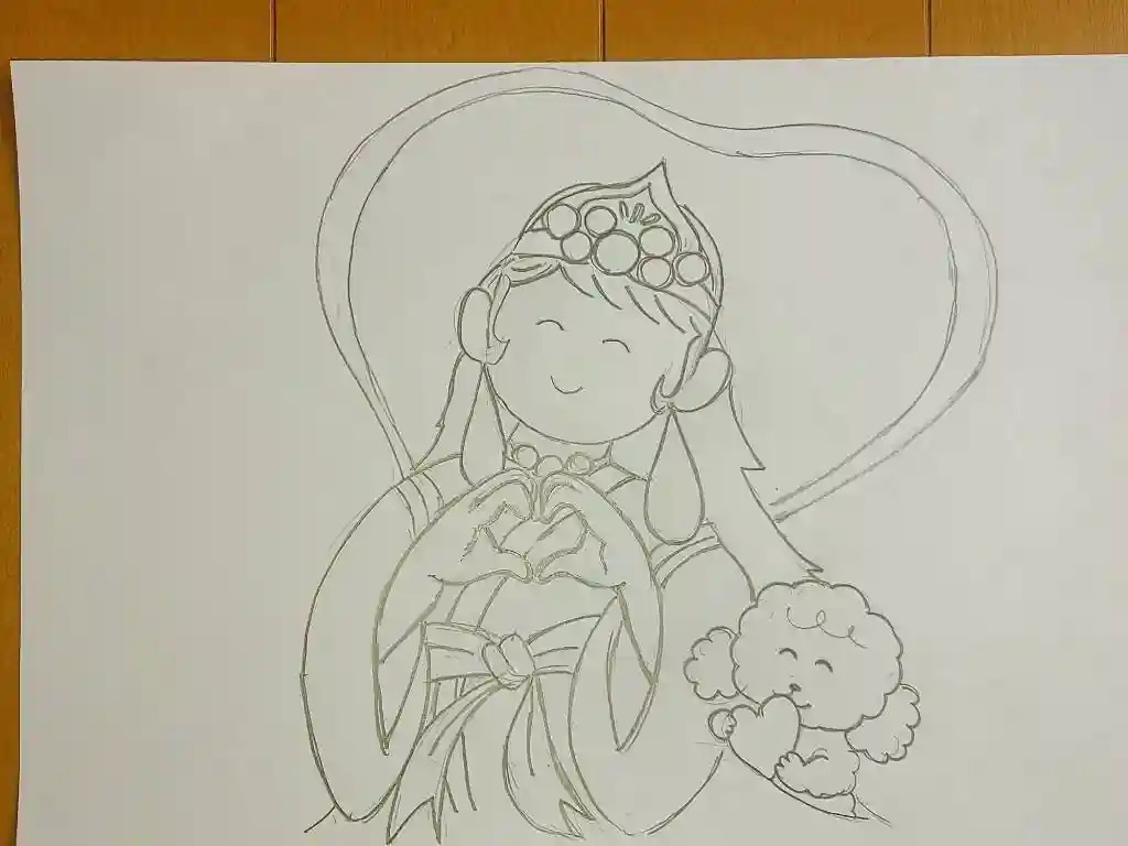 今回の御朱印のテーマは、『愛』であり、天女と案内犬のハナ丸が『愛』を表現しています。