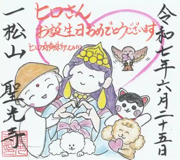 聖光寺では、誕生日や結婚記念日など、皆様からオーダーをいただき、特別な御朱印を