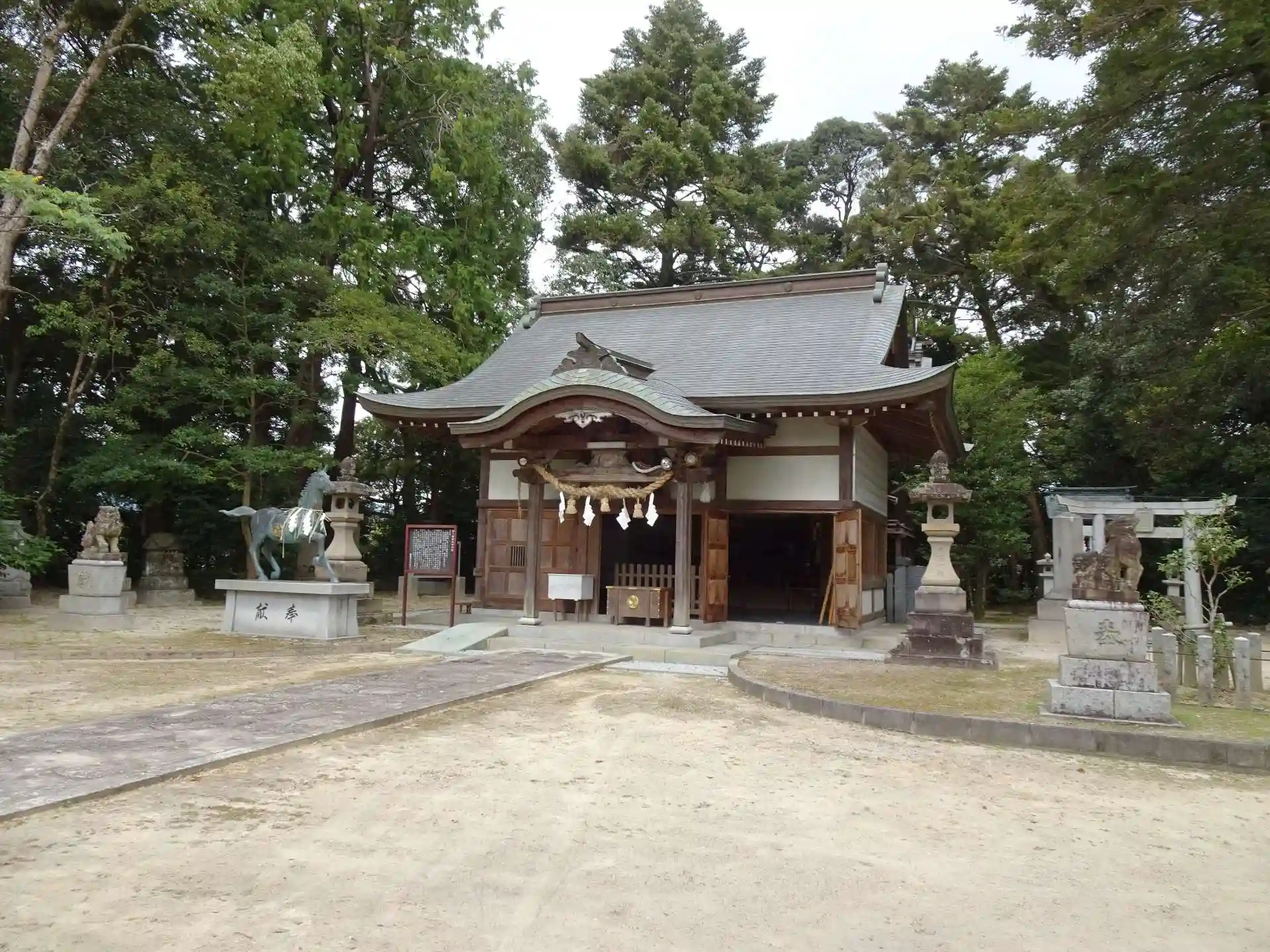 県道沿いには、白い大きな鳥居が印象的でした。御朱印は、初穂料はいただいておりませんということでしたので、末社のお賽銭とさせていただきました。