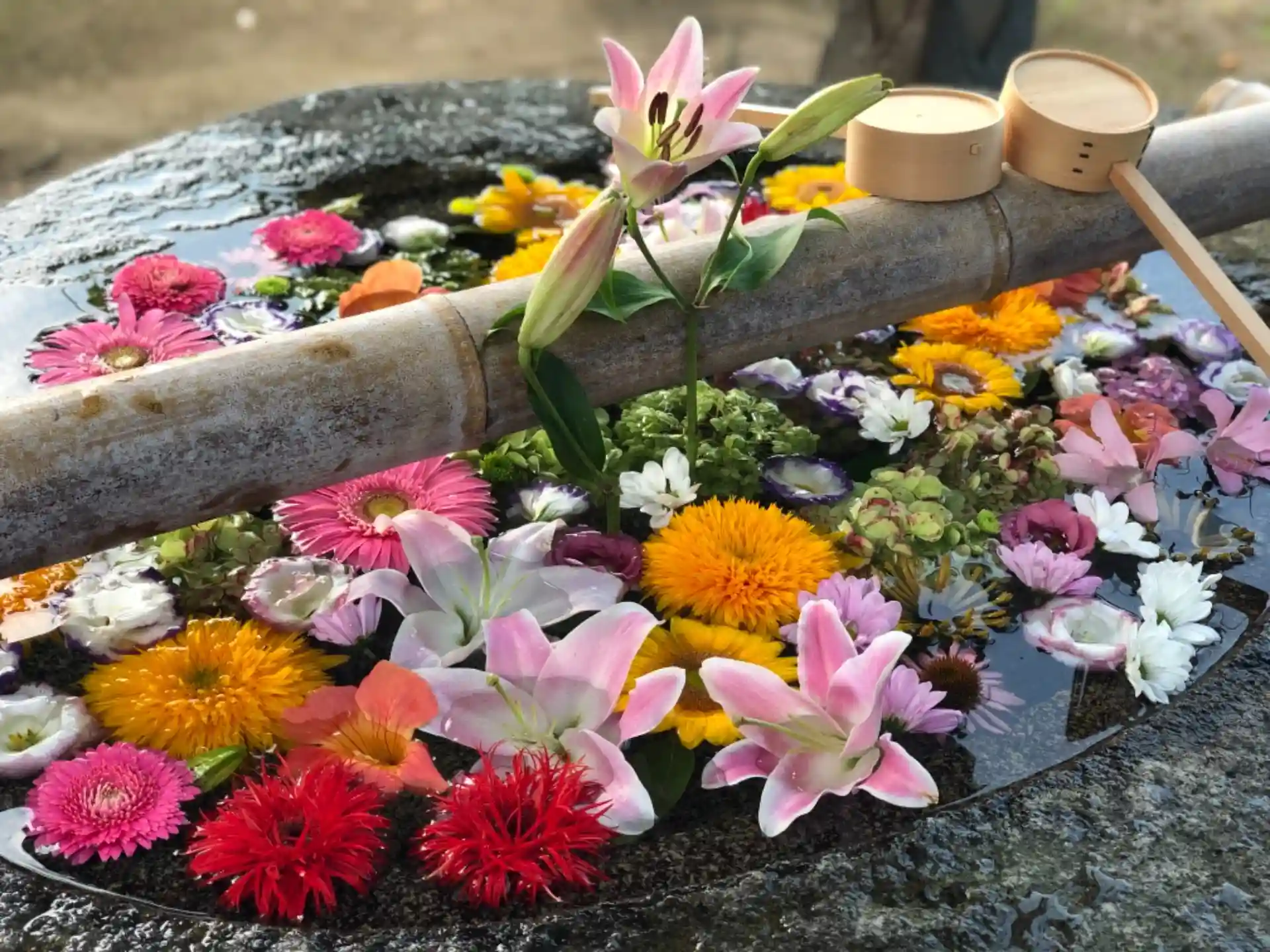 毎月一日に花手水をしております。