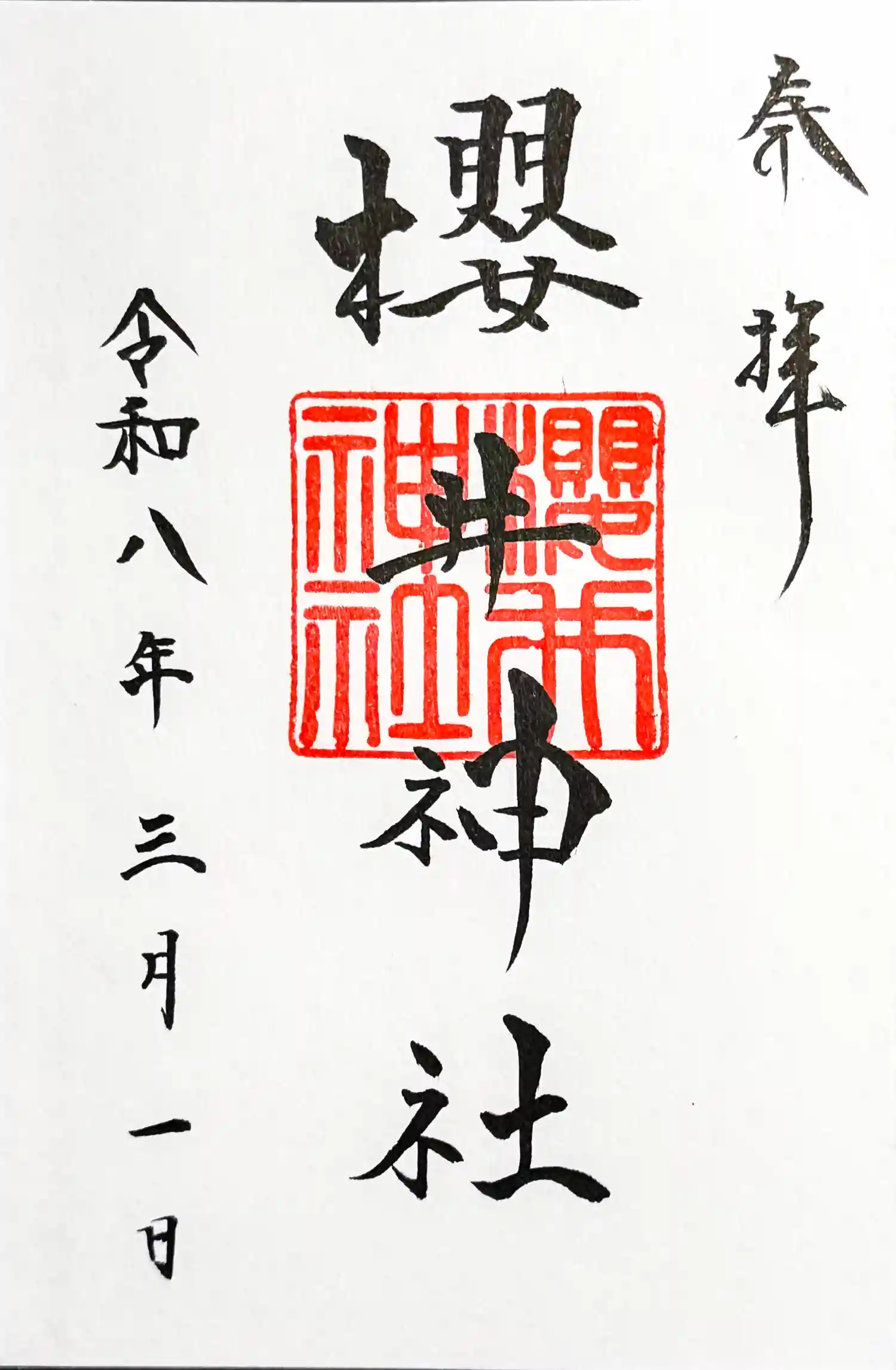 櫻井神社で拝受なので遥拝になっています